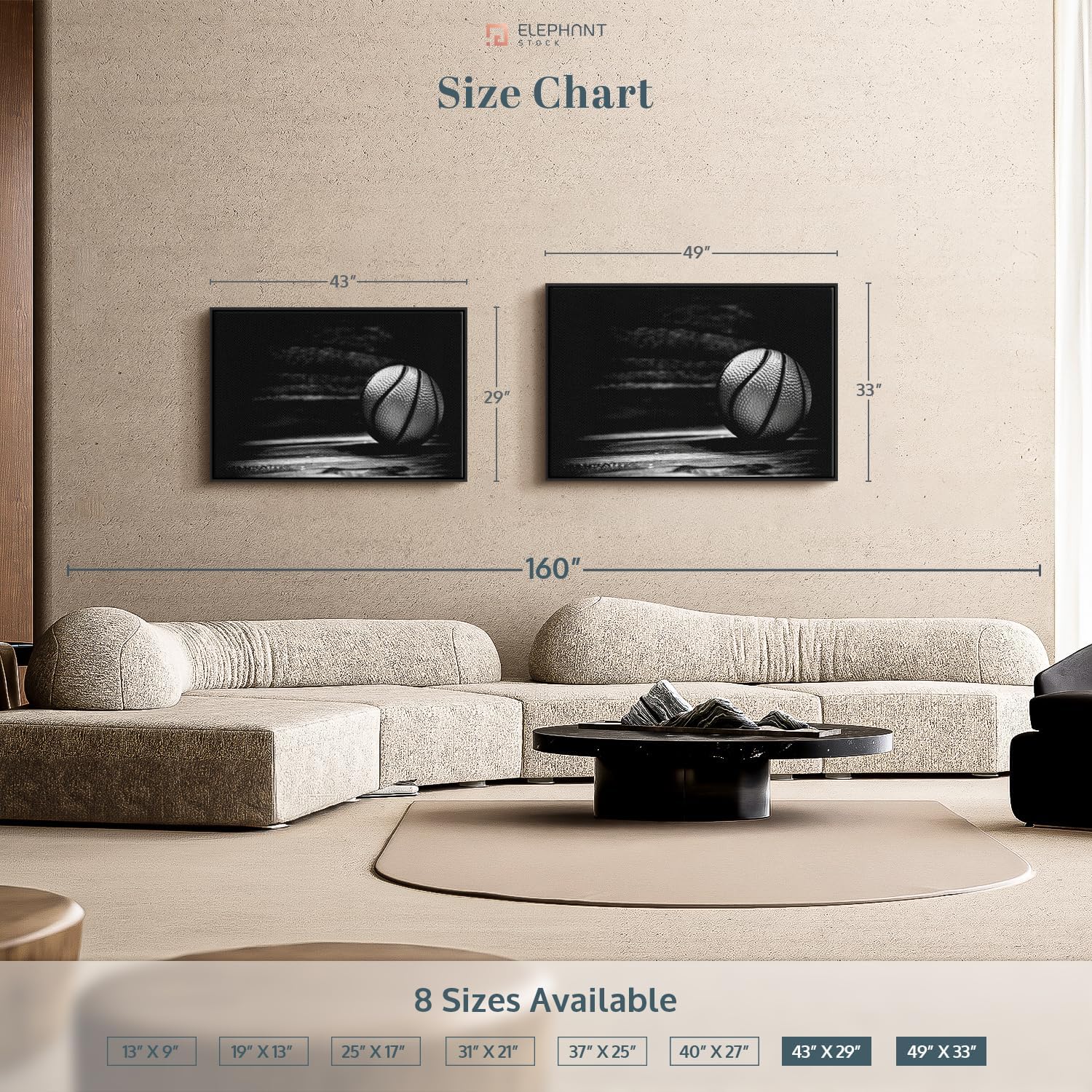 ElephantStock Basketball Wall Art - Horizontal Framed Canvas - 1-Piece Hallway Wall Decor - Photography sports Canvas Print - Black and Gray Decor for Wall - 43" X 29"