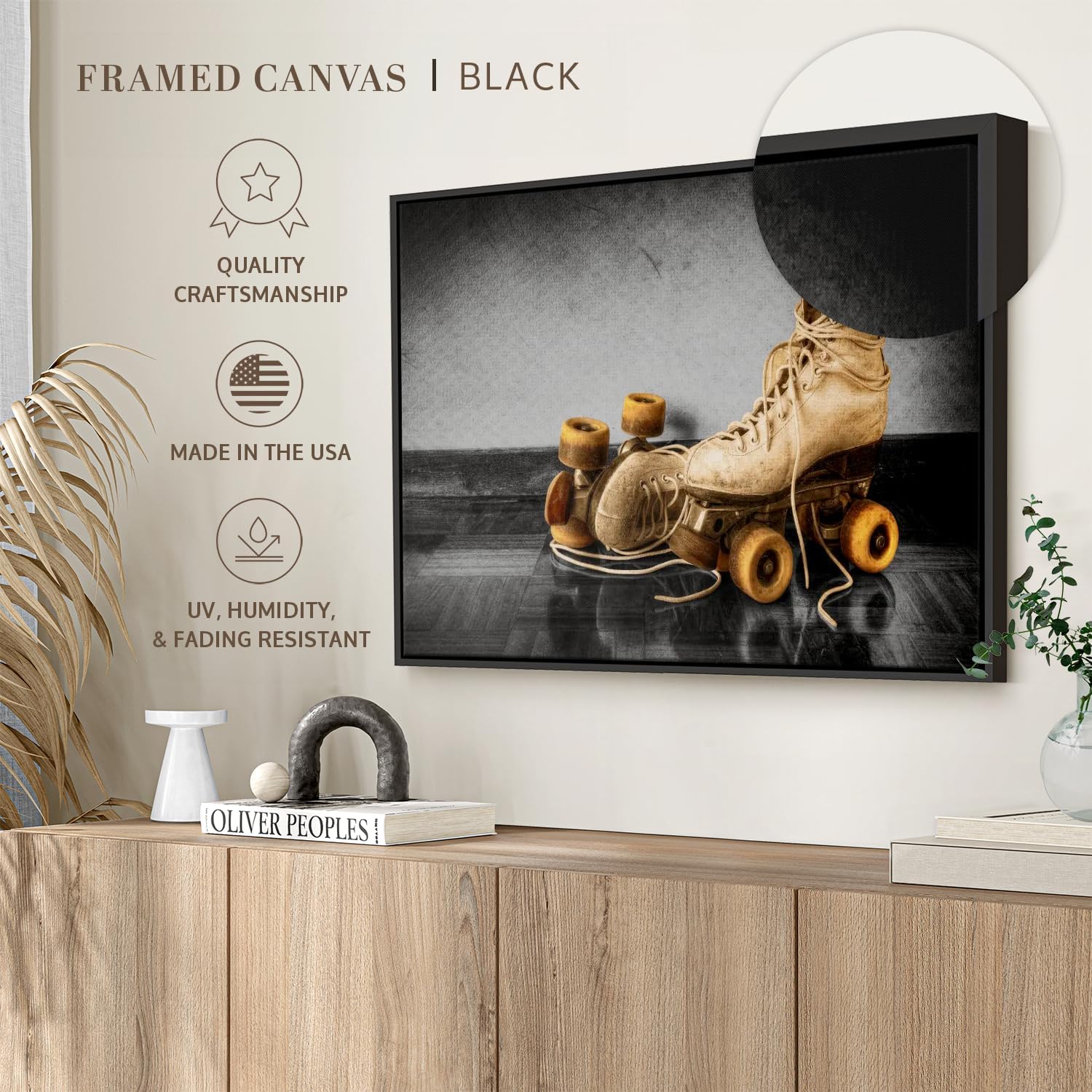 ElephantStock Vintage Skates Pop Wall Art - Horizontal Framed Canvas - 1-Piece Living Room Wall Decor - Sport Photography Canvas Print - Beige and Black Decor for Wall - 43" X 29"