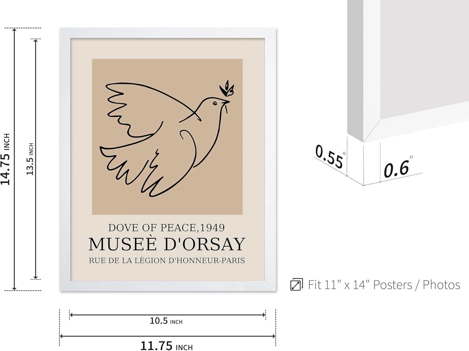 Poster Master Vintage Poster - Retro Minimalist Print - Gift for Artist, Friend - Dove Of Peace, Line Drawing, Sketch, Abstract - Wall Decor for Living Room, Bedroom, 11x14 White Framed