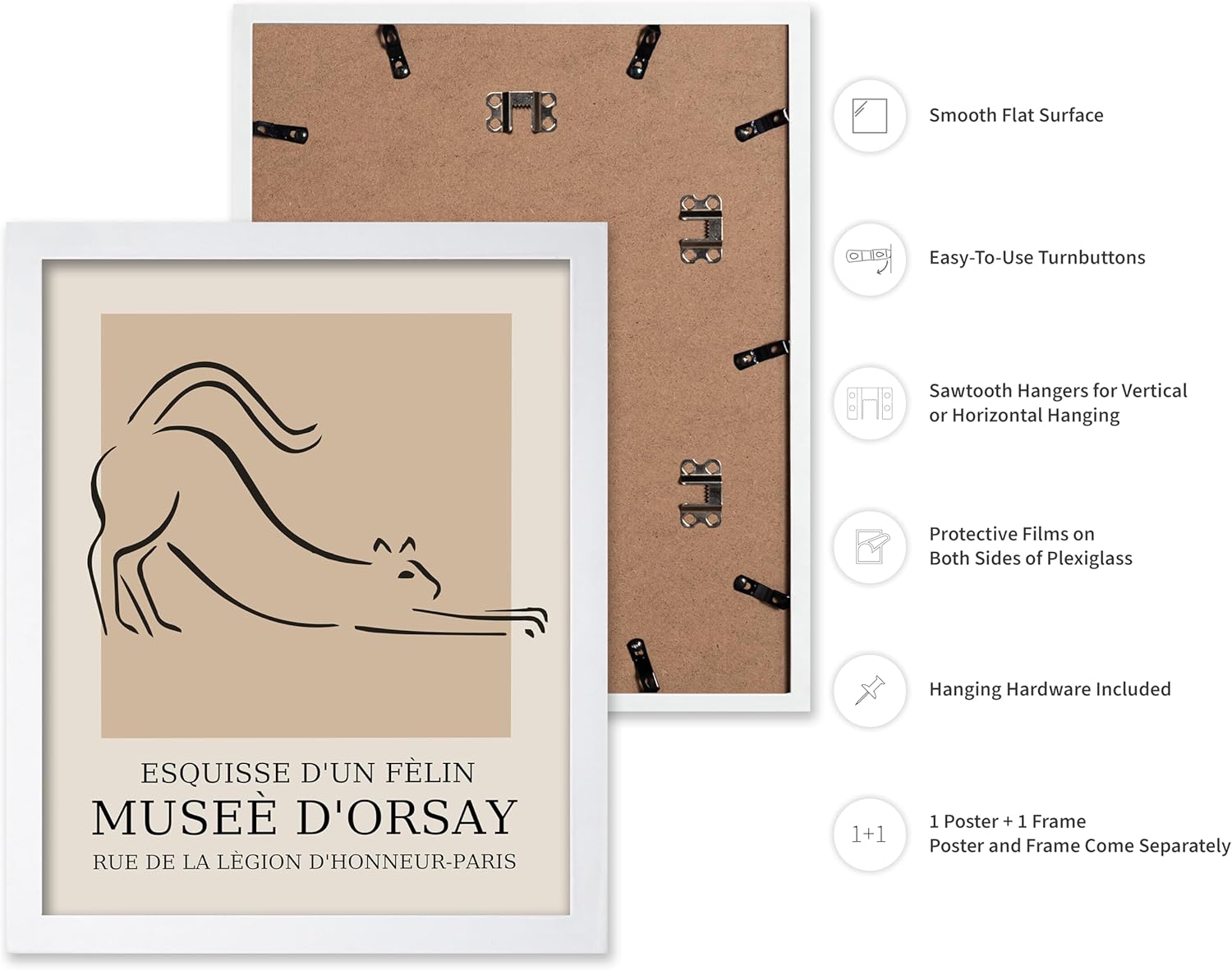 Poster Master Vintage Poster - Retro Minimalist Print - Gift for Artist, Housewarming - Cat, Line Drawing, Sketch, Abstract - Wall Decor for Living Room, Bedroom, 8x10 White Framed