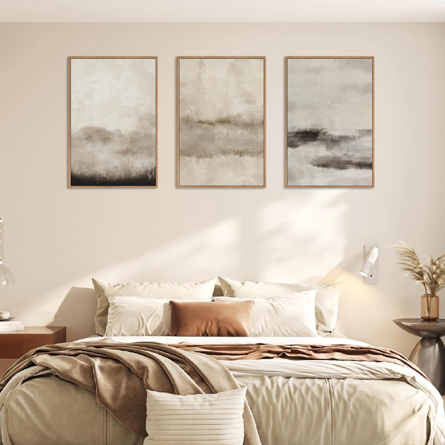 HPINUB Large Abstract Framed Canvas Wall Art Set,Minimalist Beige Gray Pastel Watercolor Wall Decor,Modern Illustration Neutral Art Painting for Living Room,Bedroom,Dining Room,Office -16"x24"x3