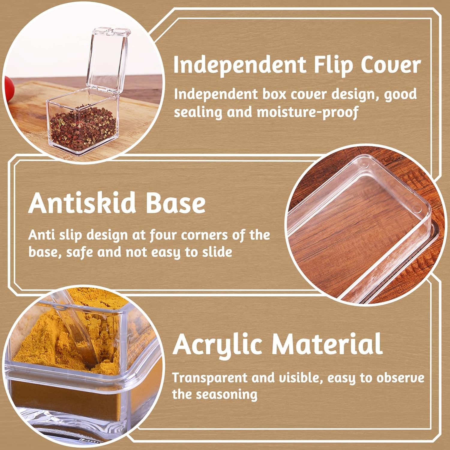 - Sturdy and Durable: The seasoning containers are made of high quality acrylic material, sturdy and durable, no odor, safe for food storage.
