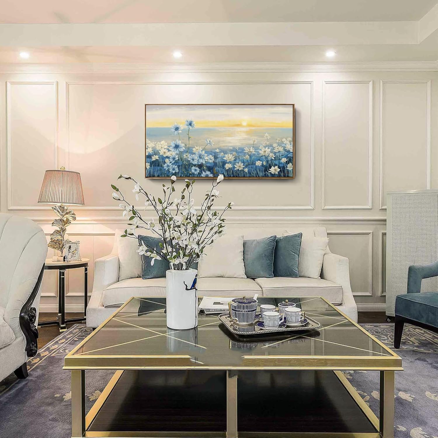 - Great Wall Décor/Gift Idea: Suitable for hanging on walls in a home, office, beach house, or lake cottage,this piece can revitalize any space, be it the living room, bedroom, dining room, bathroom, or study, with its unique artistic ambiance. The meticulously crafted details and original design make this floral painting perfect as a gift idea. The decorative ocean wall art can be a wedding gift, housewarming gift, anniversary gift, engagement party gift, or Valentine's gift.