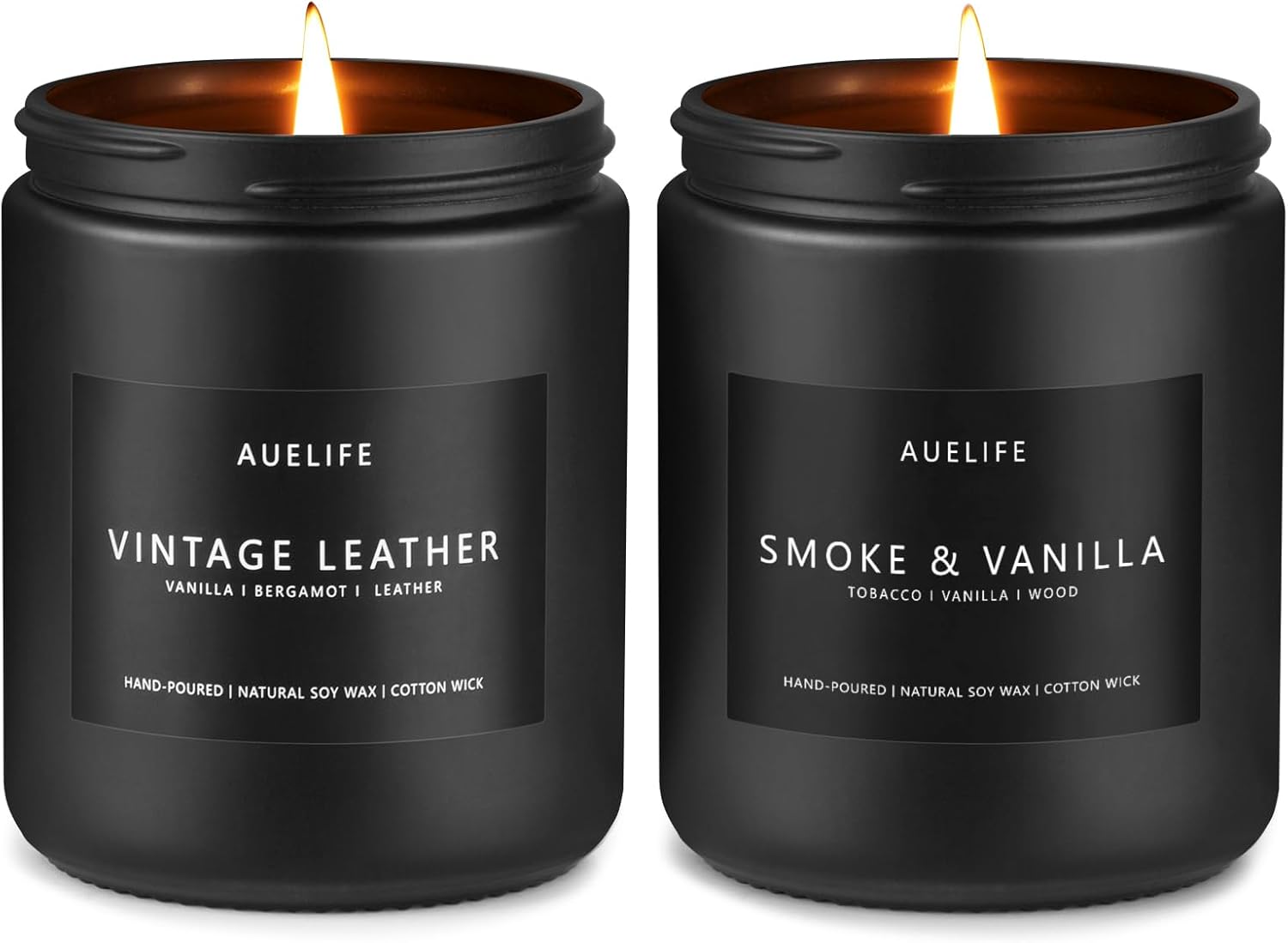 2 Pack Men Candles | Smoke & Vanilla + Vintage Leather - Scented Candles for Men - Masculines Candle - Soy Candle for Home Scented, Man Gifts, Black Jar - 7oz