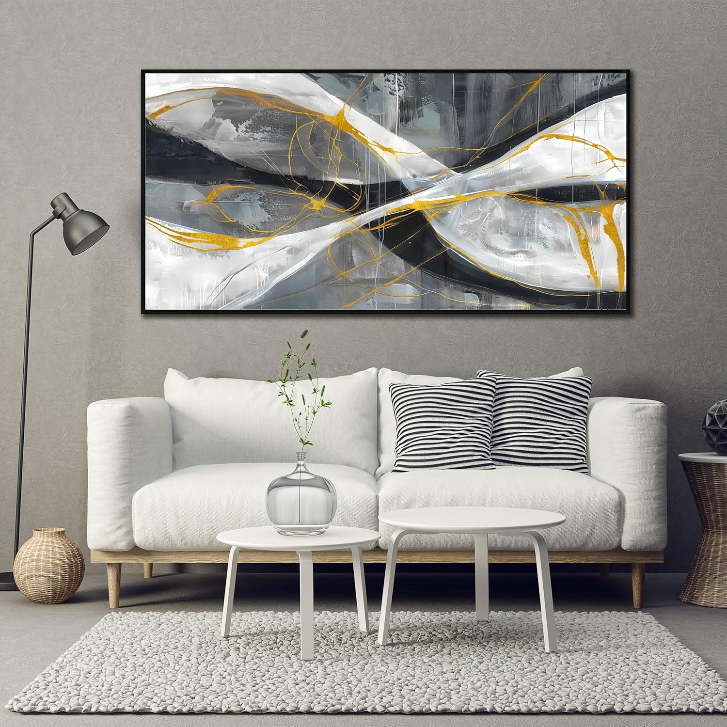 Ouzzlie Abstract Wall Art Grey Wall Decor for Living Room Large Canvas Art Picture Gold Artwork 29" x 59"
