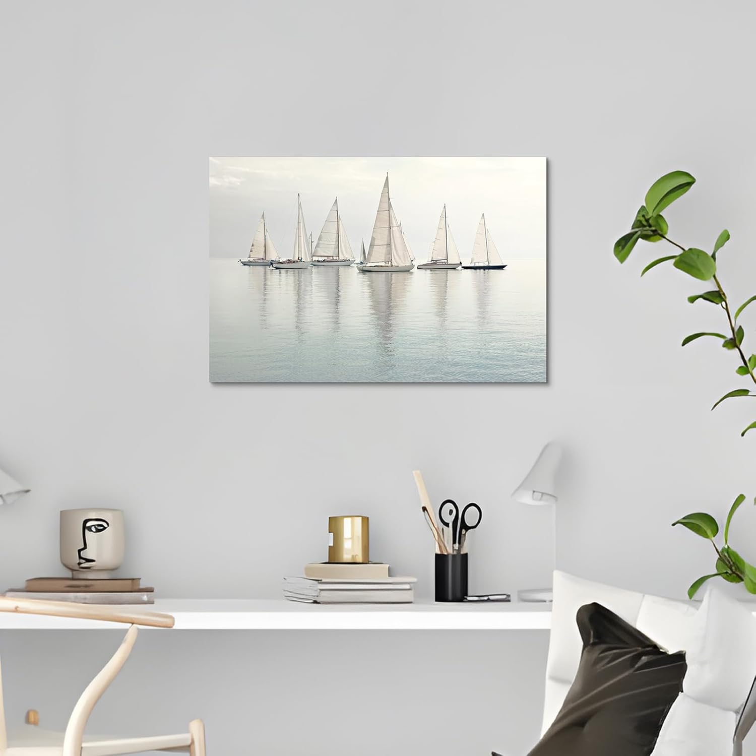 - Serene Seascape Ambiance: The 24x16” white nautical wall decor captures the sailboat on a calm sea, bringing a sense of peace and relaxation to your home or office. The artwork features a palette of gray and white tones with touches of aqua green, creating a fresh and soothing atmosphere