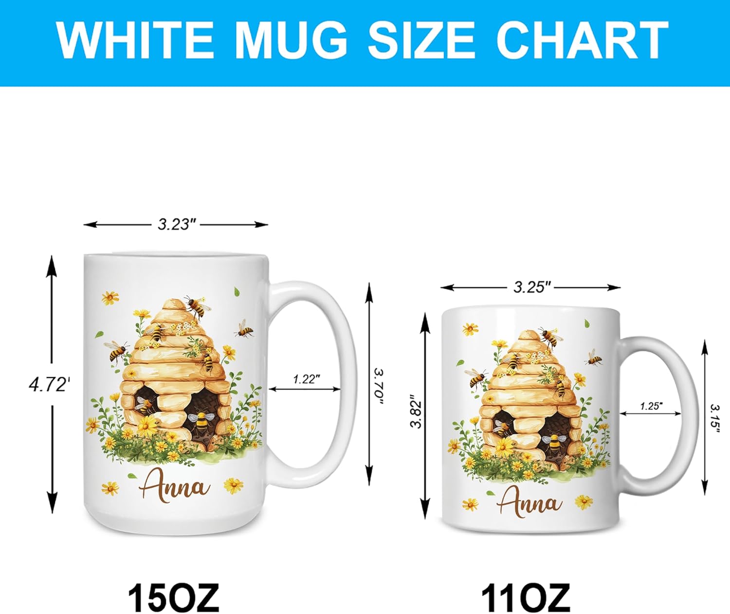 Hyturtle Personalized Bee Mug - Bee Keeper Gifts For Women - Honeybee Gifts For Lovers - Animals Present For Lovers On Birthday - Teacher Appreciation Present - Custom Coffee Cup Ceramic Mug 11 15 Oz
