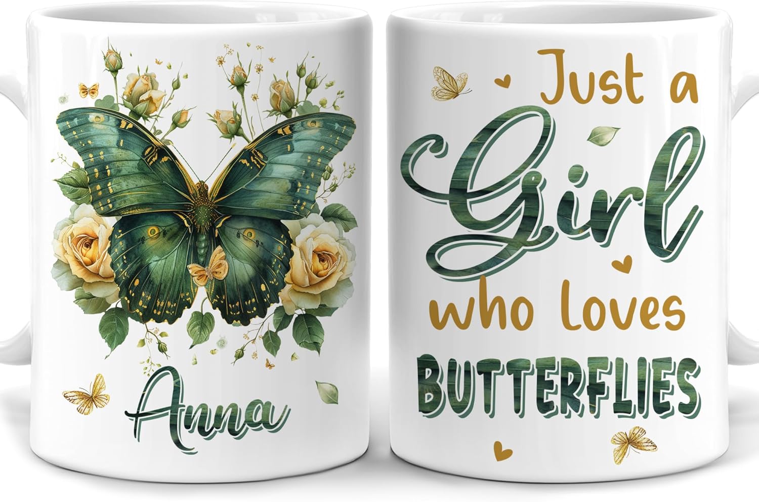 Hyturtle Personalized Floral Butterfly Mug - Butterfly Gifts For Women Lovers - Animal Gift For Bird Lover Her - Bird Gifts For Mom on Mother Day - Custom Name Coffee Cup Ceramic Mug 11 Oz 15 Oz