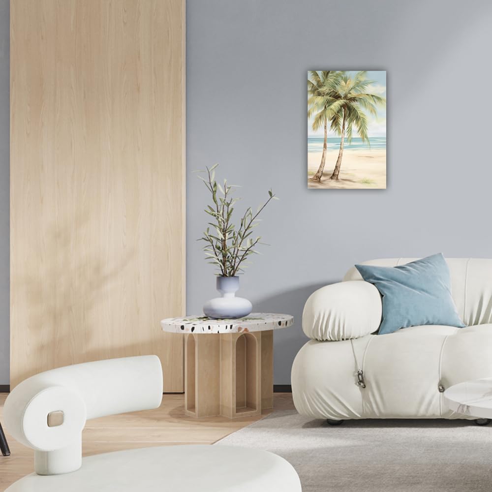 LURENCZH Tropical Beach Canvas Wall Art Seaside Palm Tree Picture Wall Decor Ocean Scenery Painting Prints for Bathroom Decor Framed(Beach-2,20.00" x 30.00")