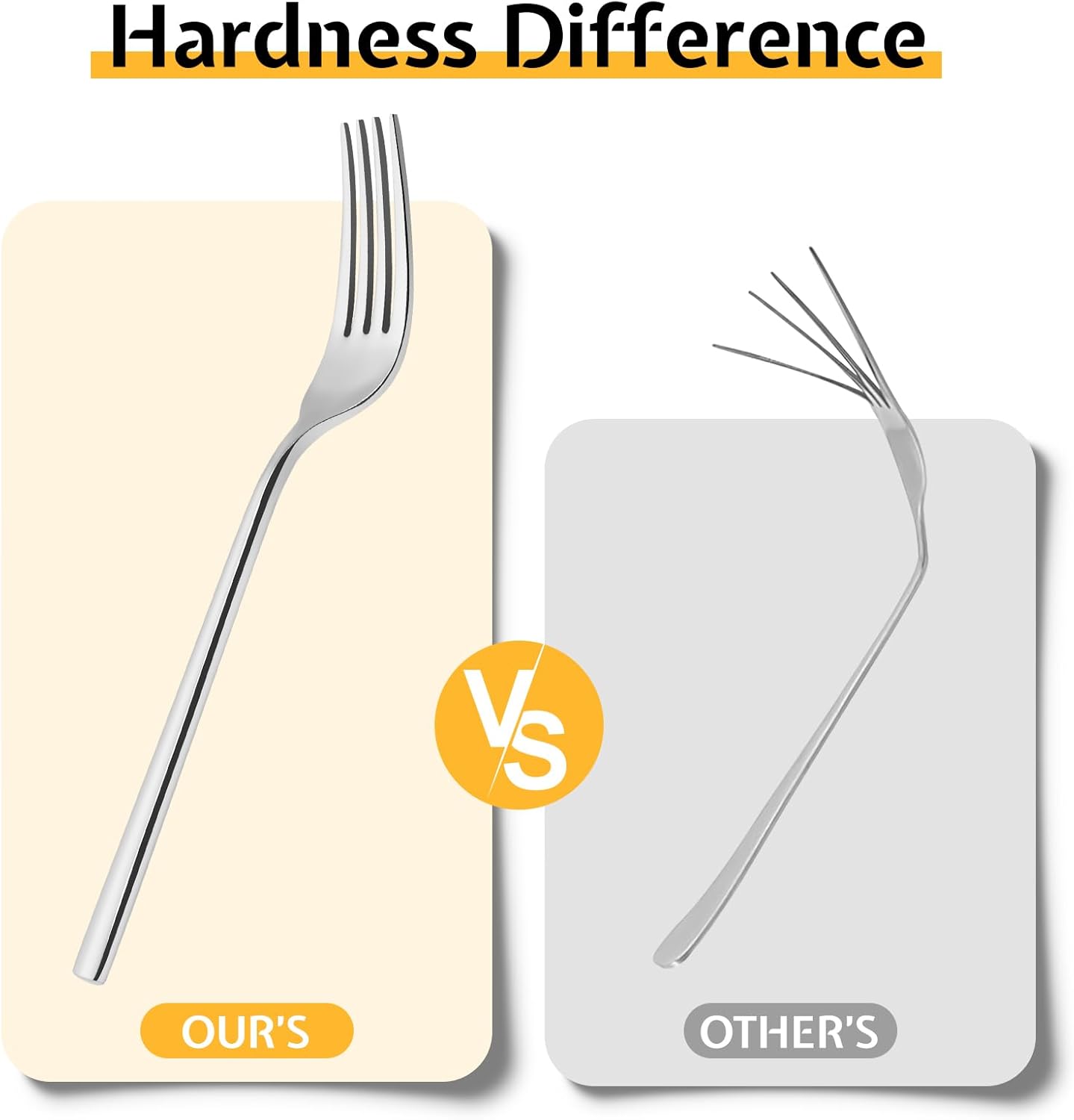 - DESIGN AND APPEARANCE: Mirror finish, natural and elegant design.Smooth and silk surface without grain, easy to clean and care in daily use. Crafted forged process,strong and durable,so that the flatware set has a thicker texture.
