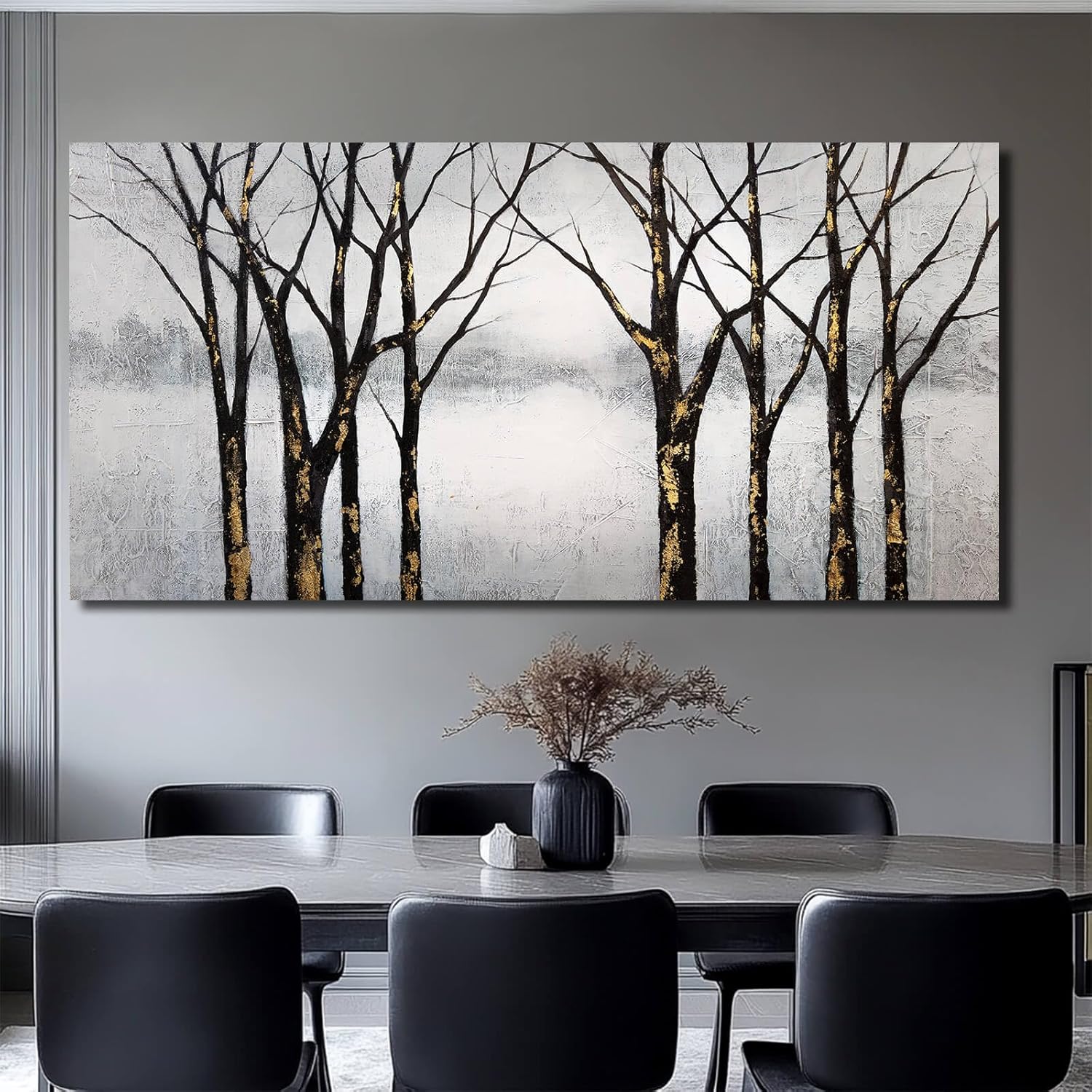Black Wall Pictures Tree Wall Art Canvas Wall Decoration Large Home Decor White Poster Art Gold Office Artwork 29"x58"