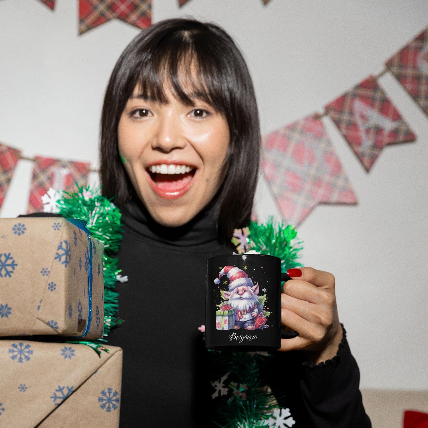 - 💝 UNIQUE DESIGN MUG: Add some festive fun to your holidays with this "Cute Gnome And Gifts Design Mug" featuring an adorable gnome holding gifts. Click "Customize Now" to add a name, making it a great personalized gift for gnome lovers. This black ceramic mug is ideal for enjoying drinks during the Christmas season.