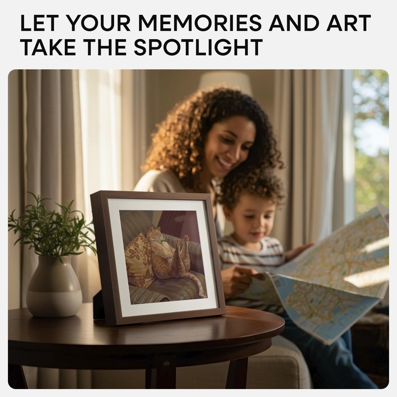 Homeforia 10x10 Picture Frame Brown, High-End Dark Oak 10 x 10 Square Brown Wood Frames with Mat 8 by 8 Photo, 10by10 Wooden Walnut Poster Frame Matted to 8x8 Print, Tempered Glass, Wall Kit, Set of 1