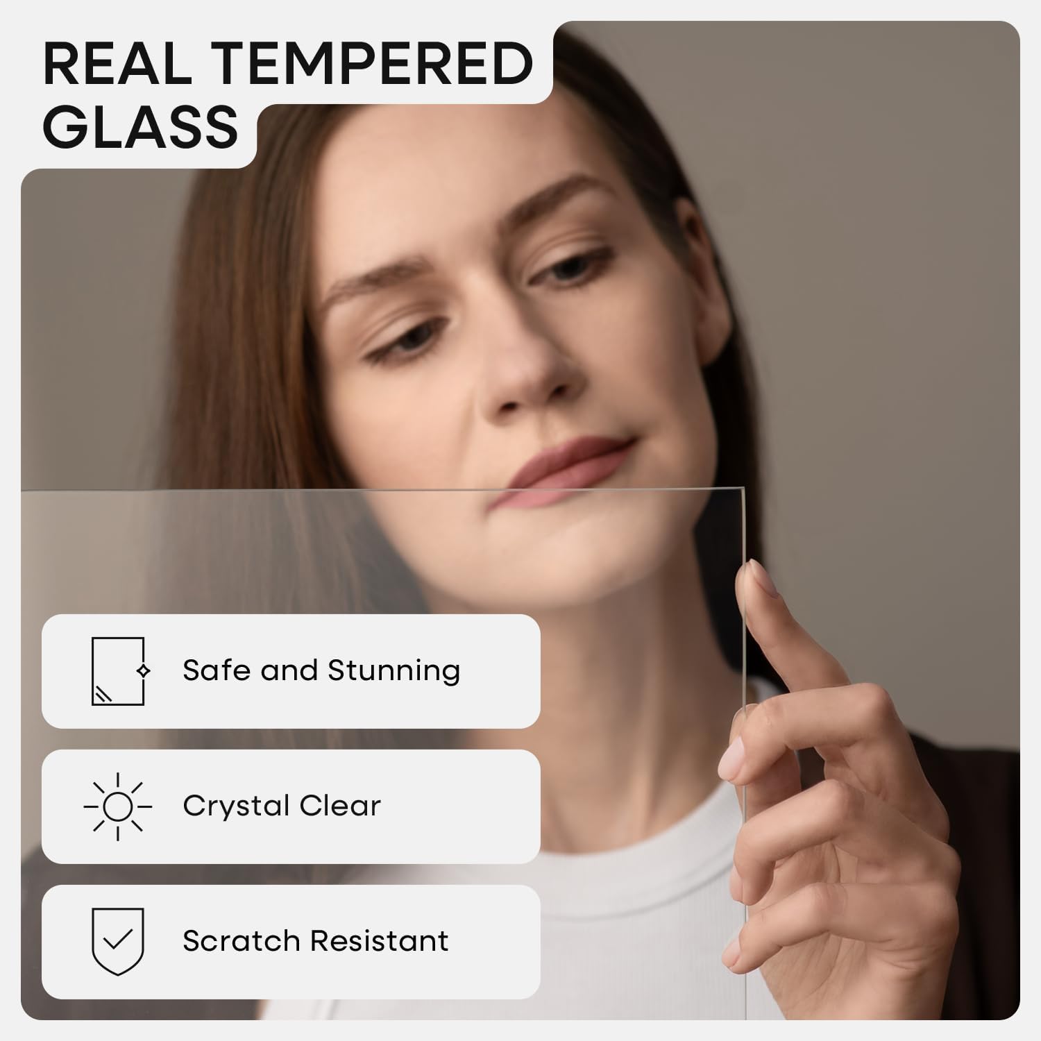 - GALLERY GRADE GLASS, TRUE CLARITY. Why settle for cloudy plexi? Our ultra-clear tempered glass sharpens every detail and adds instant polish to your photo or print.