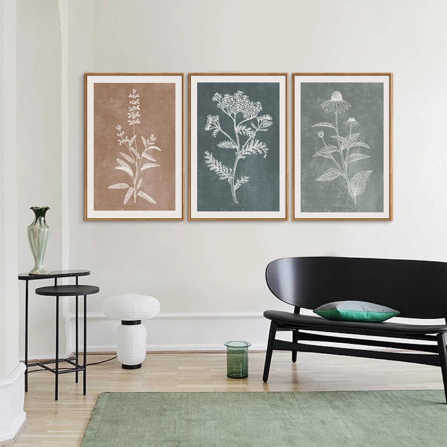 SIGNINART Neutral Botanical Framed Canvas Wall Art Set, Vintage Floral Wall Decor, Boho Minimalist Plant Wall Painting, Art Print for Farmhouse Living Room, Bedroom, Office, Bathroom 16"x24"x3