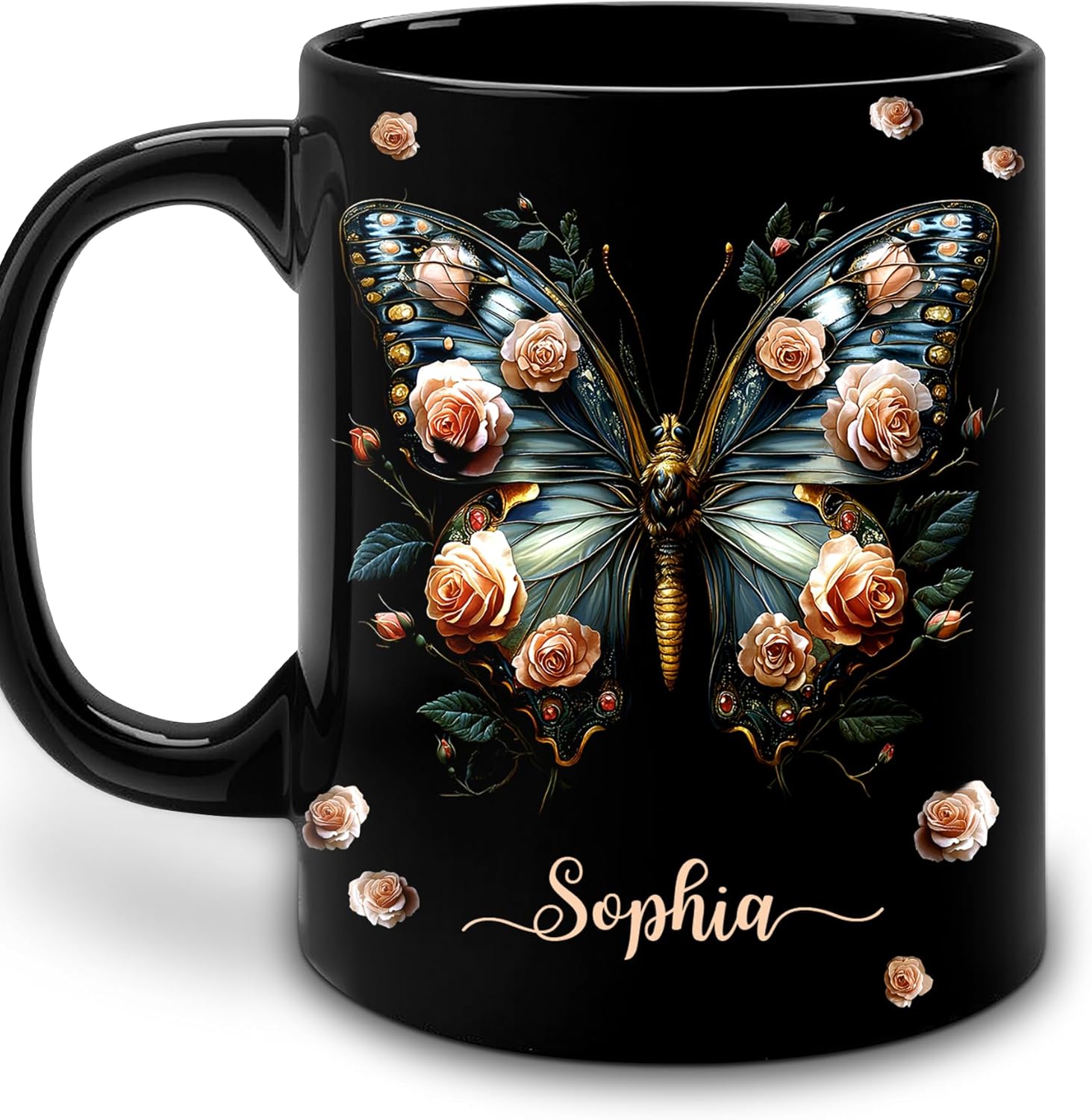 Hyturtle Personalized Butterfly 2D Print Mug - Butterfly Gifts For Women Lovers - Animal Gift For Bird Lover Her - Bird Gifts For Mom on Mother Day - Custom Name Coffee Cup Ceramic Mug 11 Oz 15 Oz