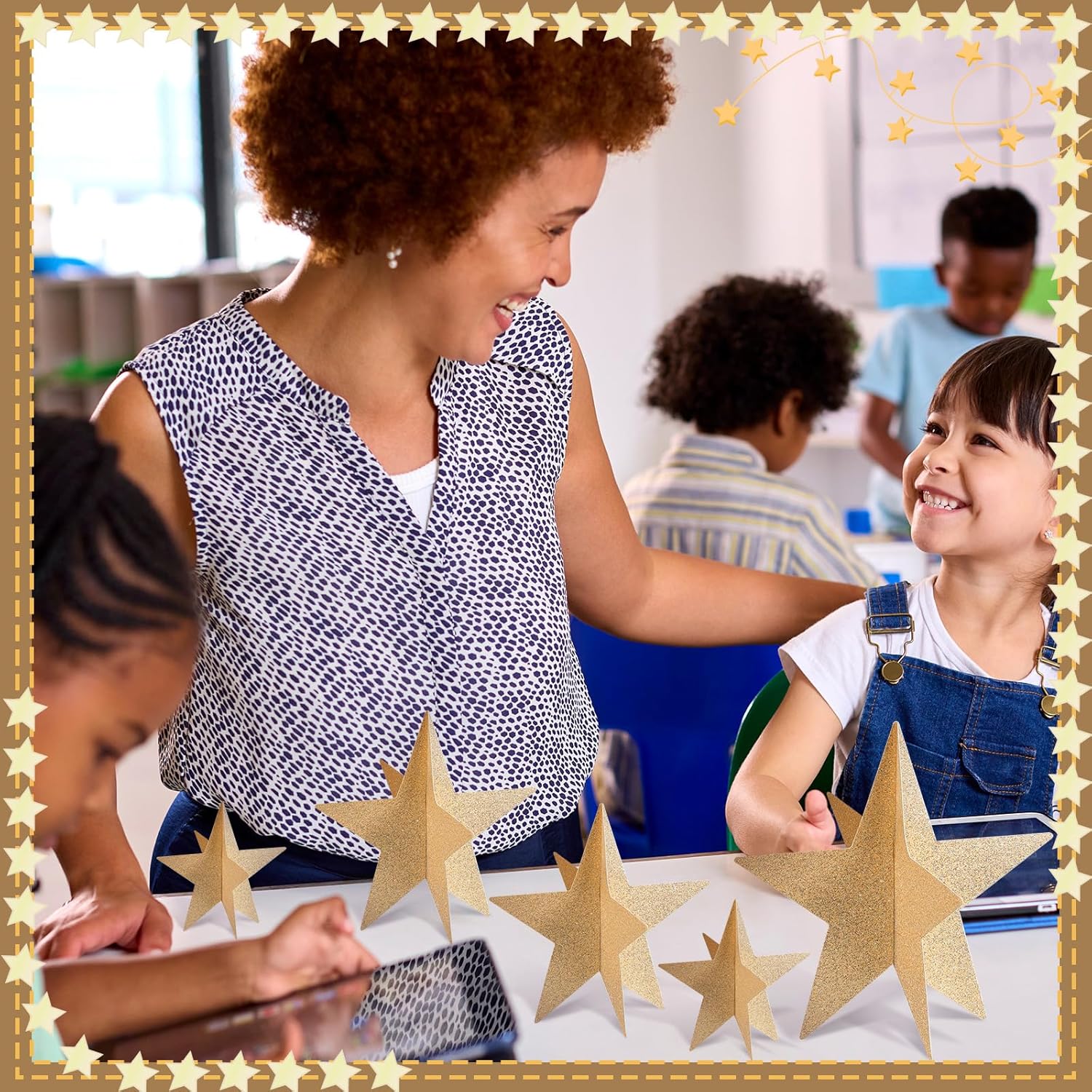 - Material and Stylish Colors: dive into the world of fun with our star table decorations, masterfully crafted with 300g cardboard material for durability; Our star centerpieces come in vibrant hues of glitter champagne gold that set the stage for an unforgettable party atmosphere