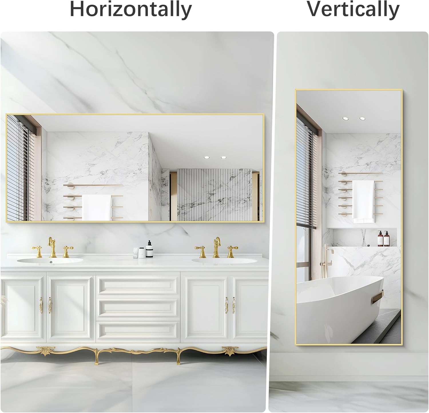 30x72inch Bathroom Mirror, Gold Rectangle Mirror with Thin Metal Frame, Large Rectangular Wall Mirrors for Bathroom, Living Roomm, Hair Salon, Big Farmehouse Mirror Hang Horizontal/Vertical