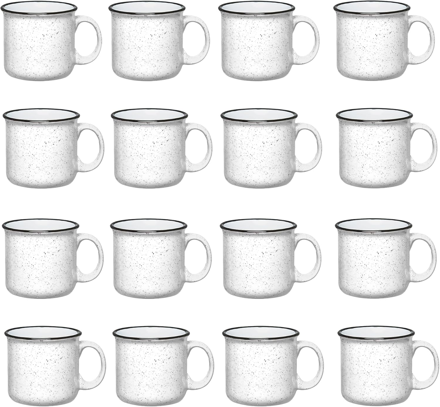 Set of 16 Ceramic Campfire Mugs – 15 Oz, White – Coffee & Tea Cups for Home, Work, Travel, Camping – Customizable, Great for DIY, Events, Companies