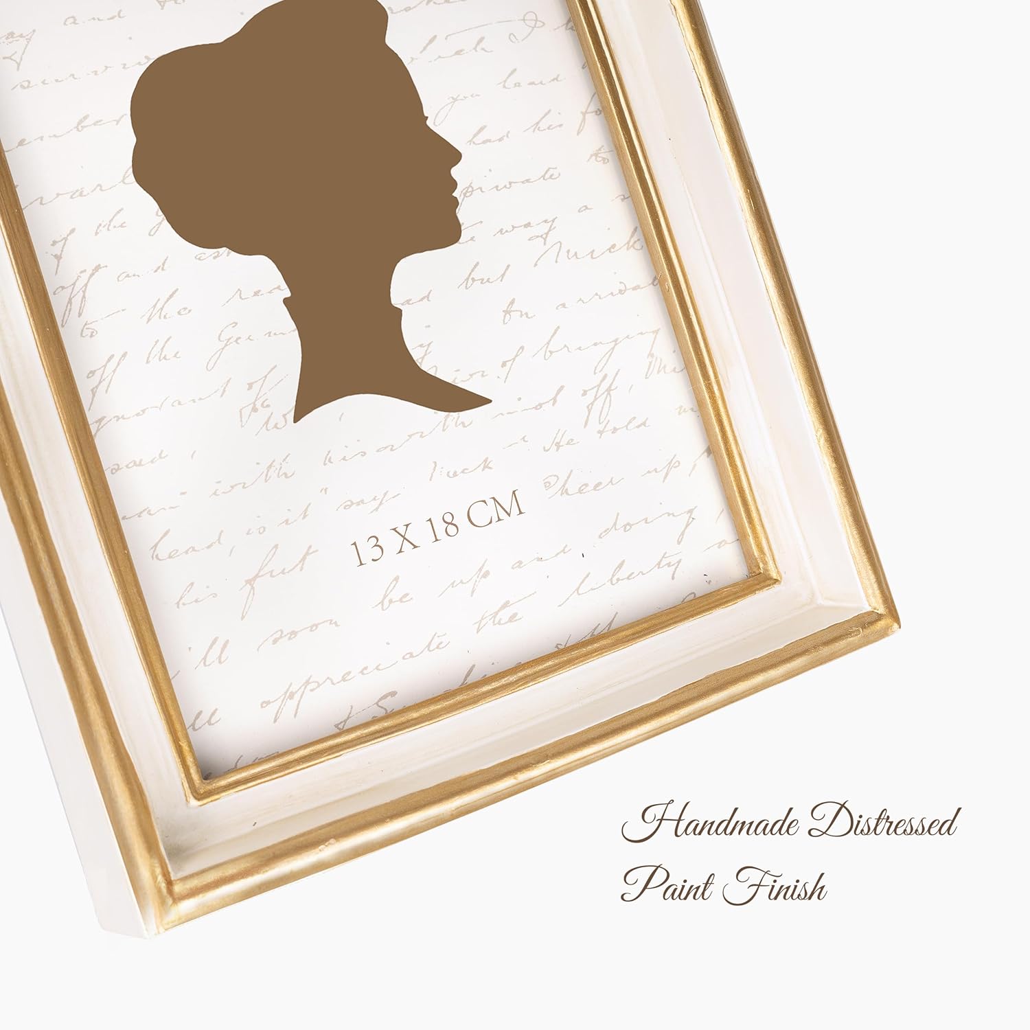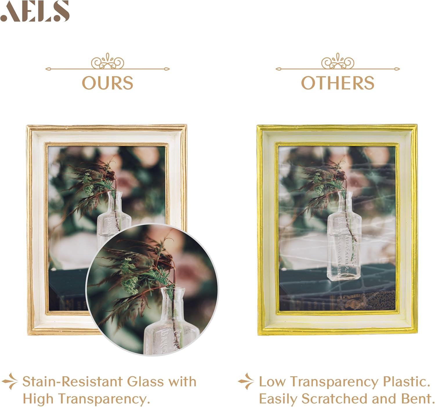 AELS 5x7 Inch Vintage Picture Frame, Elegant Antique Photo Frames with Glass Front, Photo Display, Tabletop Wall Hanging, Gift Ideas, Off-white with Gold Trim