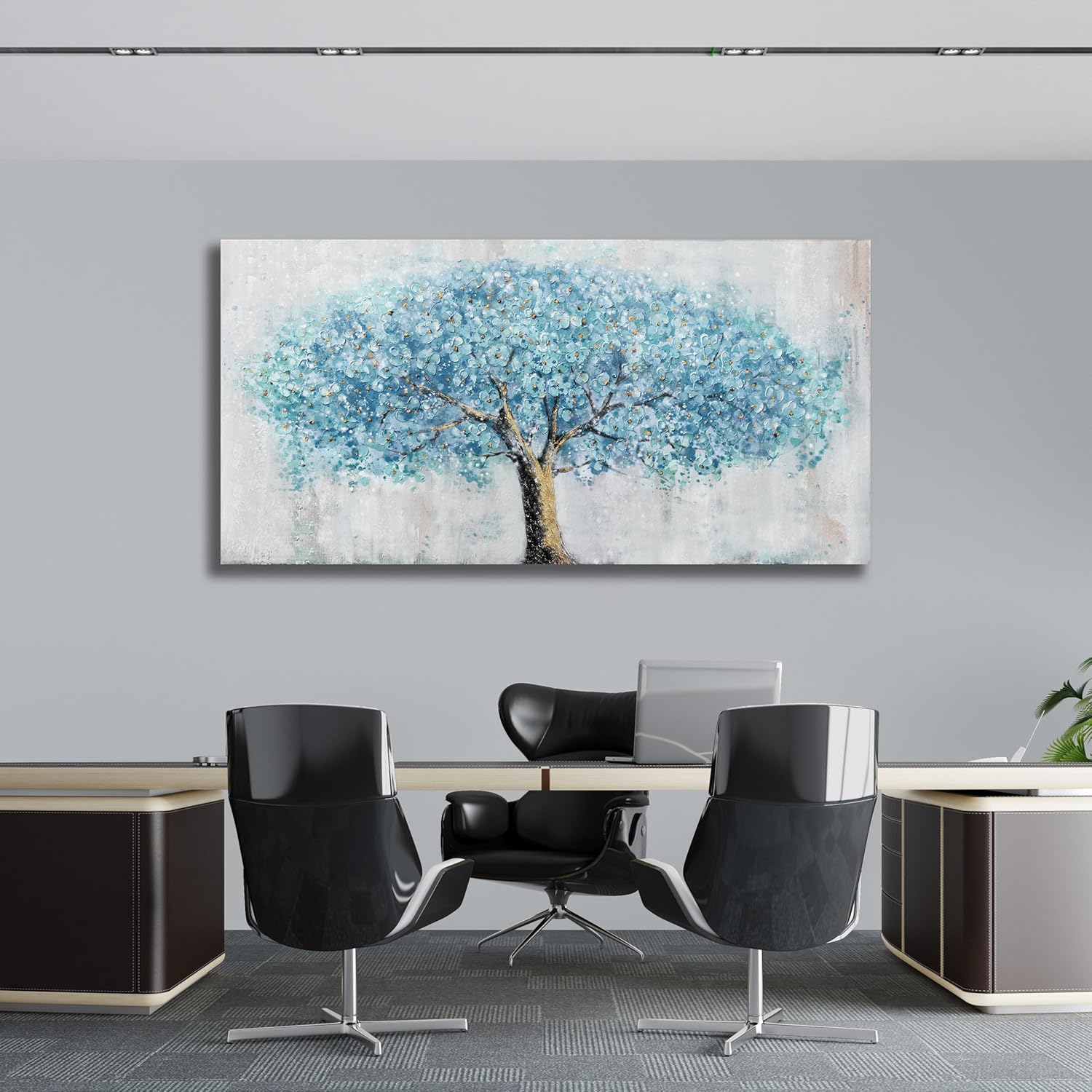 Yuaxker Tree Wall Art Blue and Gold Canvas Painting Modern Aesthetic Wall Decor Spiritual Artwork for Living Room Bedroom Dining Room Office Home Decor 20x40inch