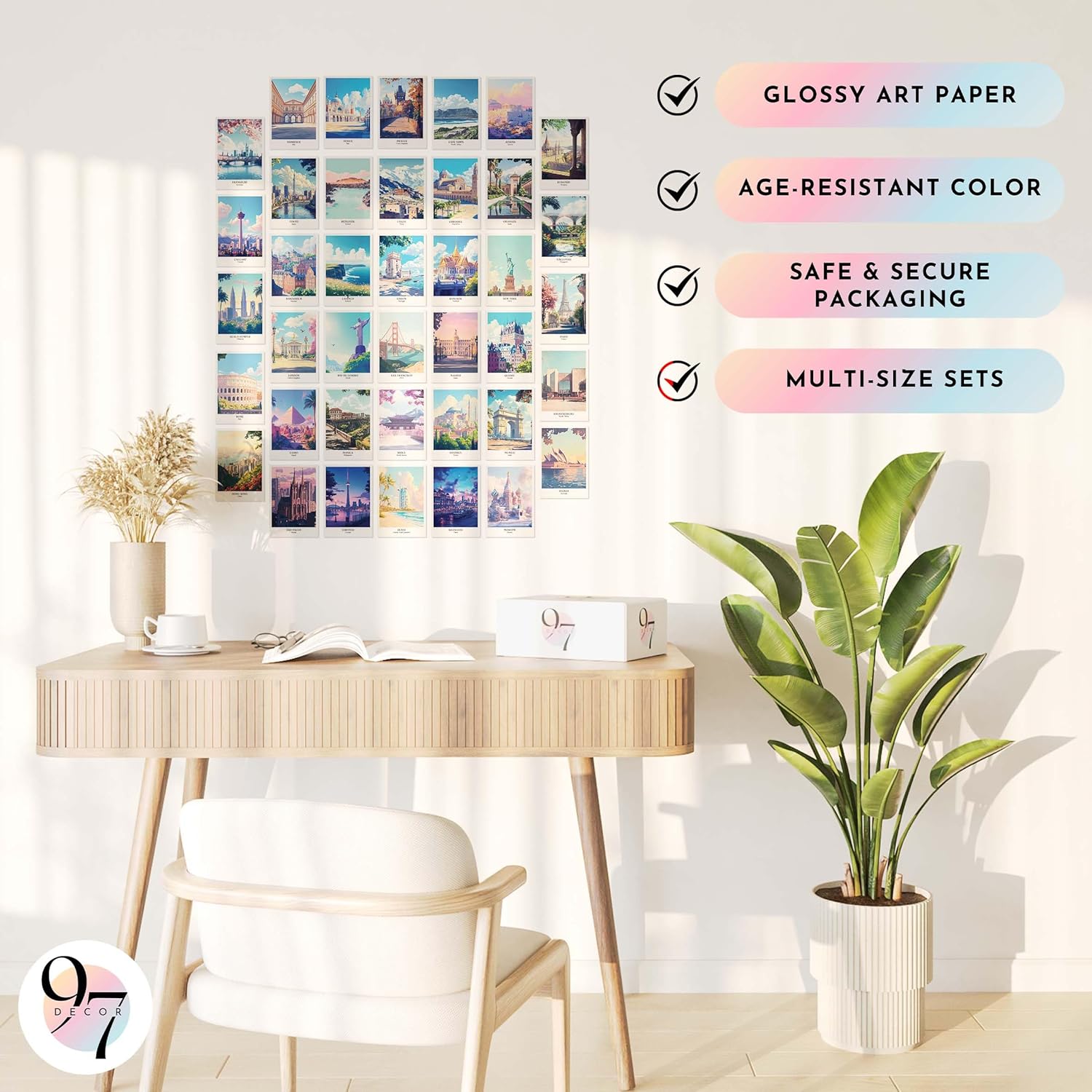 - Travel Poster Set: Explore the globe with our comprehensive Travel Poster Set, featuring 40 beautifully crafted 4x6 inch posters. This set captures the essence of travel wall decor and travel wall art, perfect for adorning any space with a spirit of adventure.