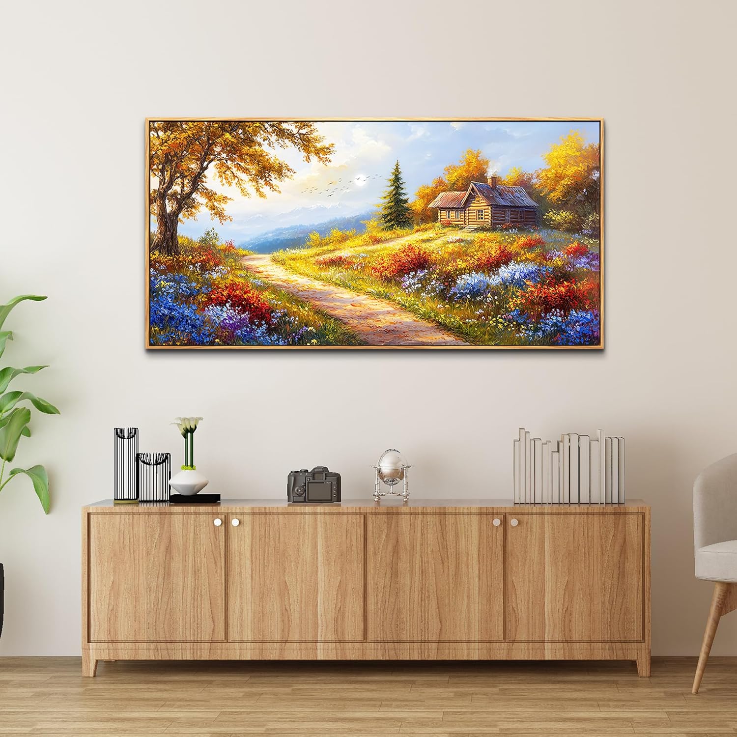 KELIYUAN Large Wall Art For Living Room Framed Canvas Wall Decor For Farmhouse Office Wall Pictures For Bedroom Landscape Painting Prints Dining Room Kitchen Modern Home Decor Wood Framed 24"X48"