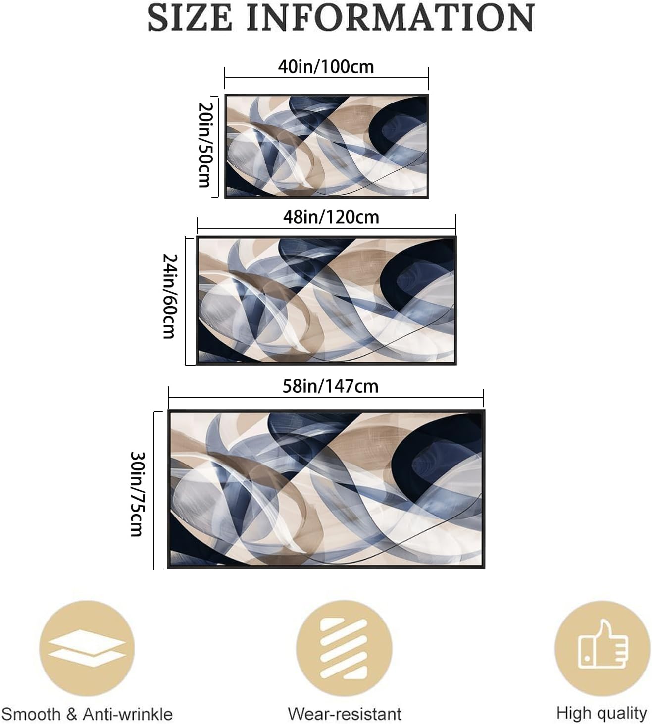 - Suitable Size for Livingroom Wall Decor - This living rooms, bedrooms, offices, geometric abstract artwork wall decor measures approx 24x48 inches (60x120 cm)
