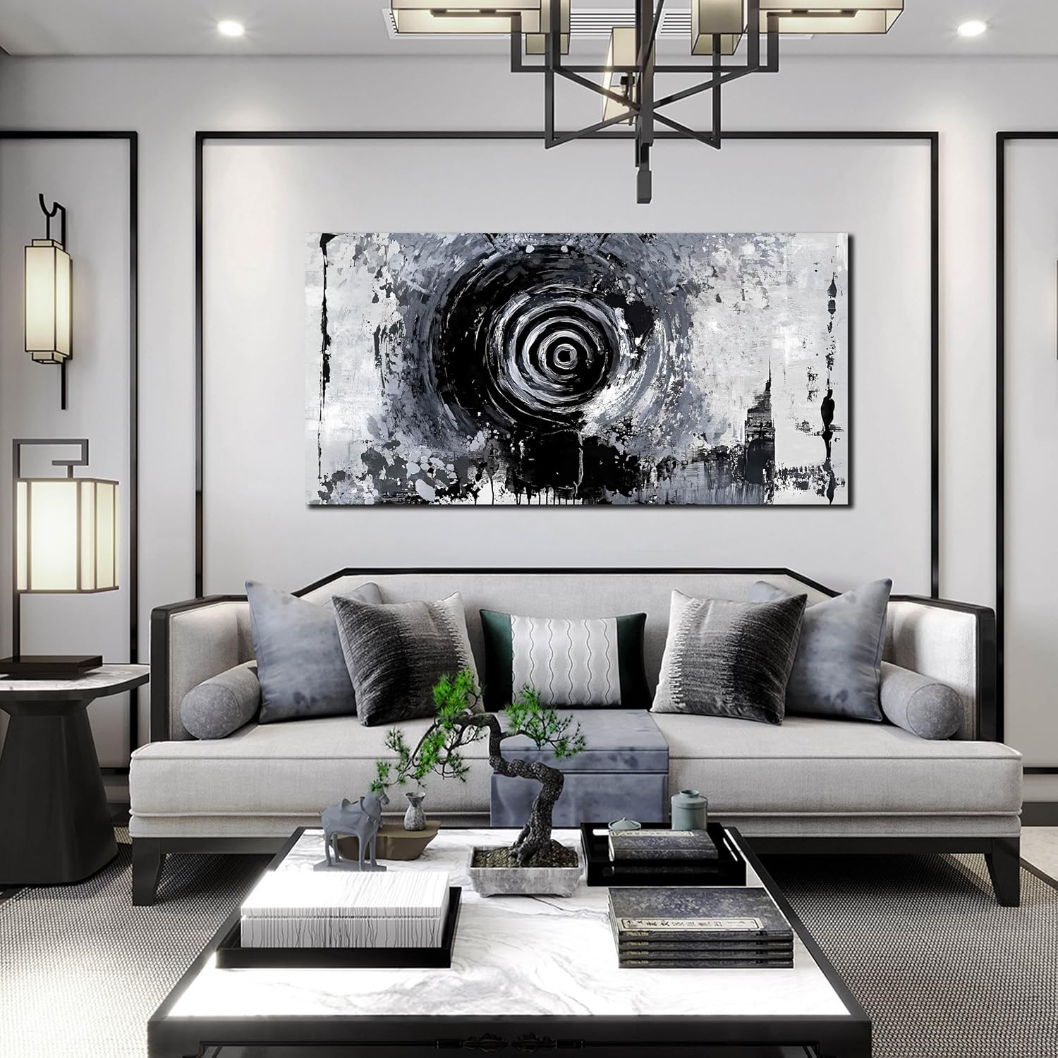 - EASY TO HANG: Each panel of canvas prints already stretched on solid wooden frames, gallery wrapped, lightweight,ready to hang. The side margins are also printed to create a particularly decorative effect Abstract large wall art for living room ,black and white canvas wall art for office Added color and fun to your bedroom, living room,office, dormitory or apartment.