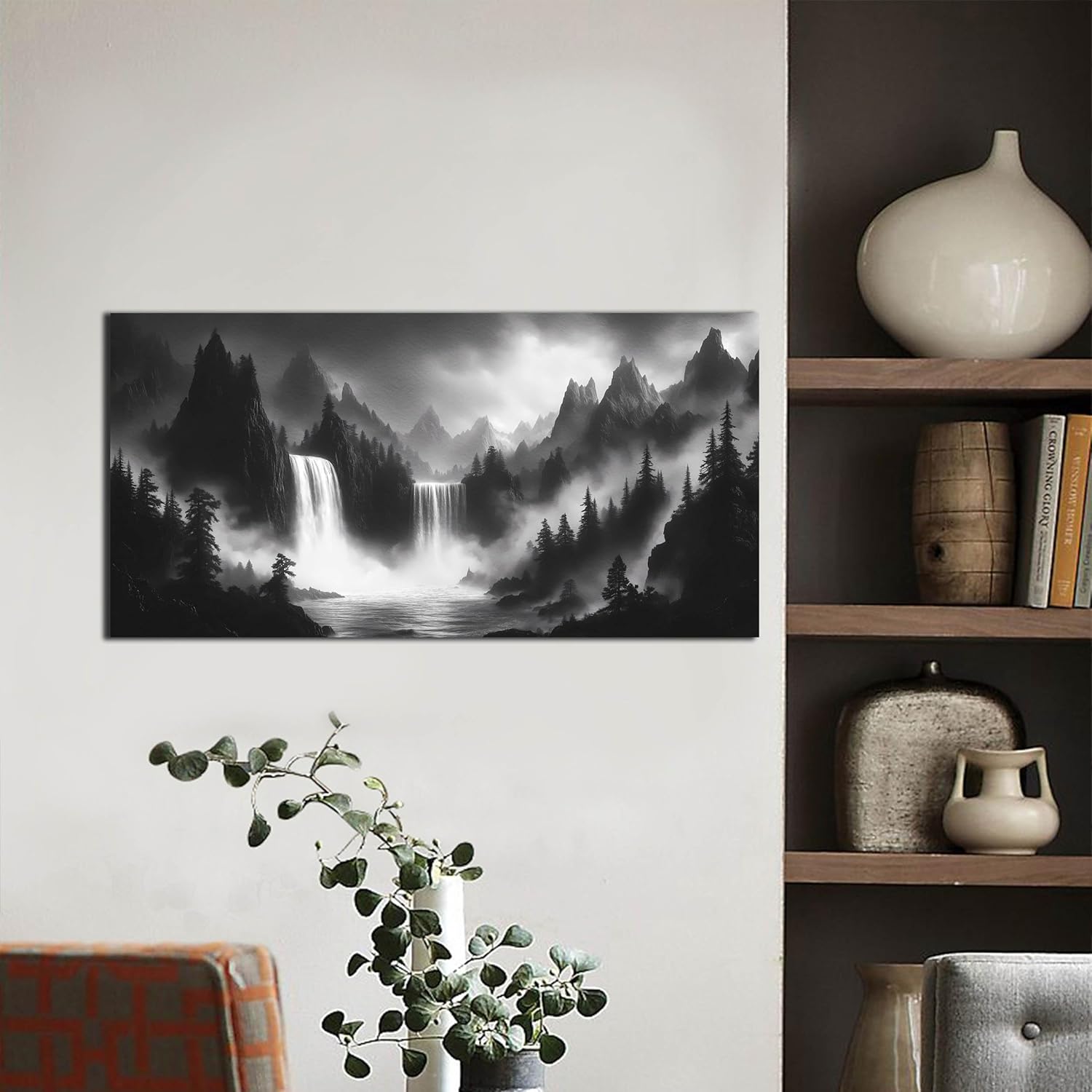 Mountain Wall Pictures for Living Room Decor - Black and White Wall Art Bedroom - Waterfall Canvas Wall Art for Office Size 20" x 40"