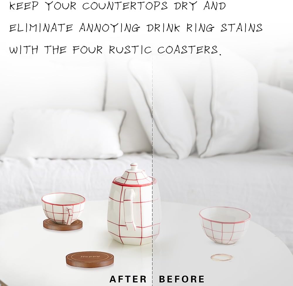 - Color : 22" Round Tray W/ 4-coasters - Acacia