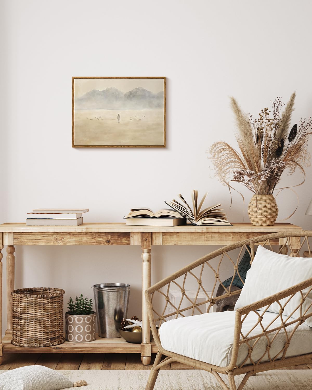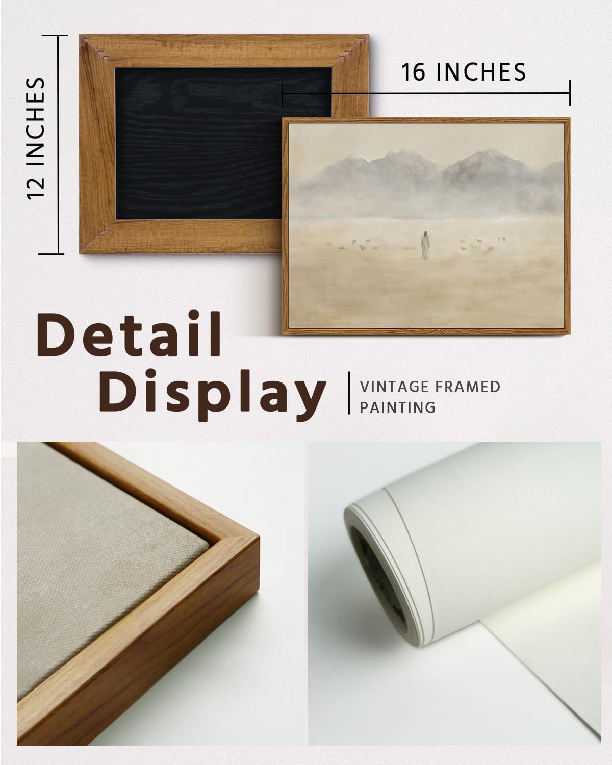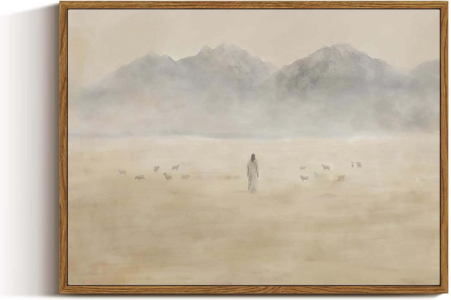 VIYYIEA Framed Wall Art for Living Room, Easter Sheep Jesus Canvas Prints, Vintage Christian Wall Art Home Decor, Christ Painting Picture, Bathroom Wall Decor Gifts for Friends or Family -16L x 12W