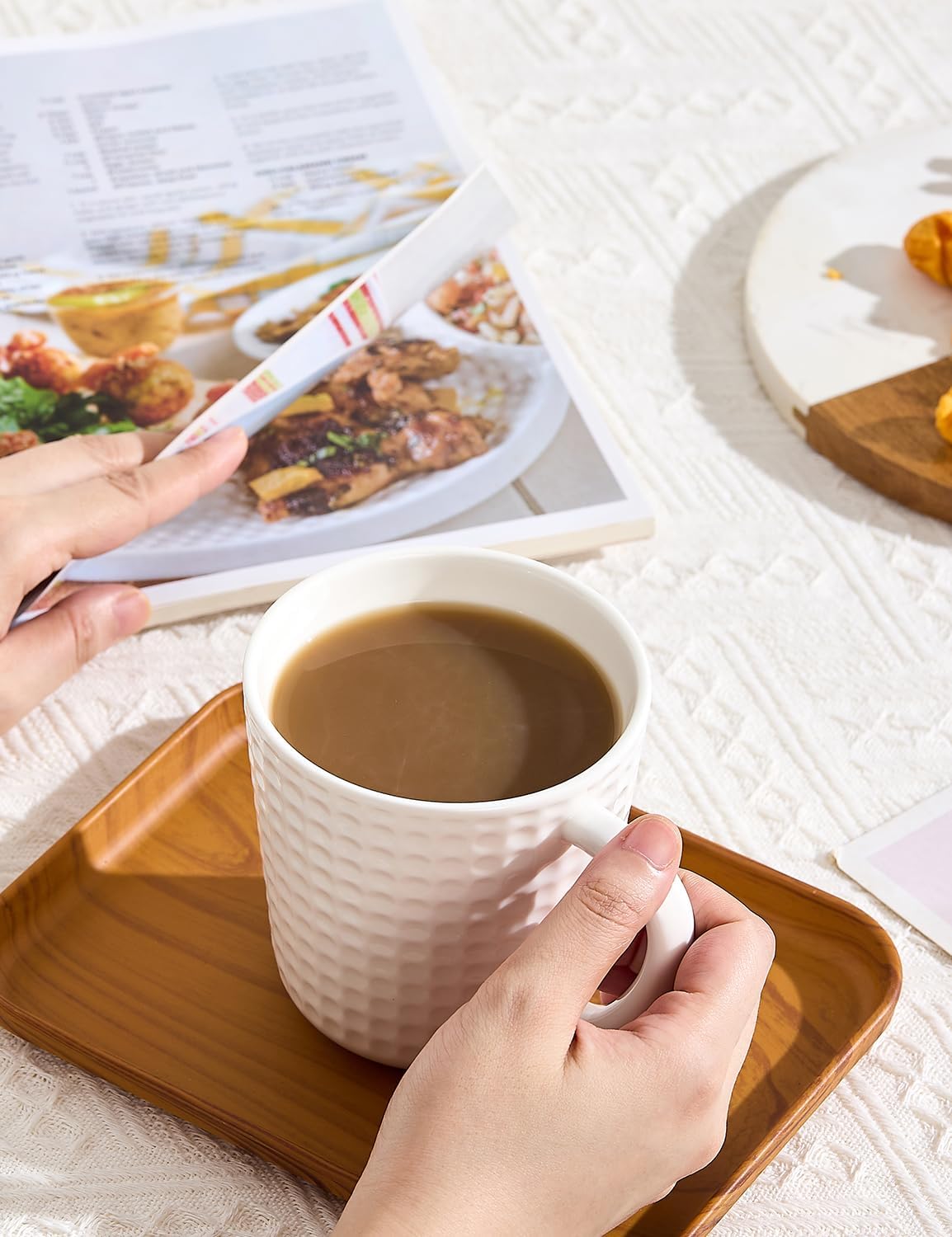 Ceramic Coffee Mugs 15 oz, Large Waffle Embossed Mug Set, Coffee Cups for Latte, Cappuccino, Cocoa, Tea, Mocha, Milk, Housewarming Wedding Present,Microwave & Dishwasher Safe - Set of 4 (White)