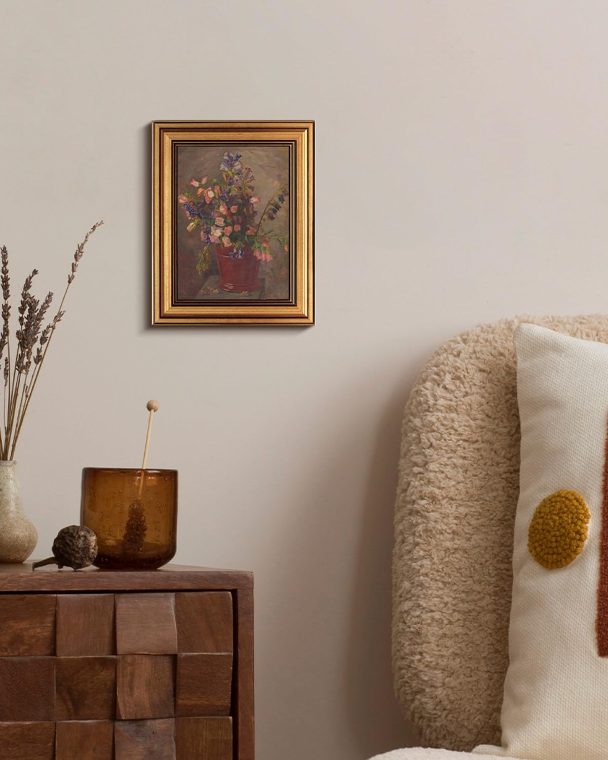 HUARCEY Gold Framed Vintage Wall Art for Living Room, Flower Painting Canvas Prints Shelf Decor for Kitchen, Aesthetic Room Decor Bedroom Wall Art, Floral Artwork for Friends or Family 8"x10"