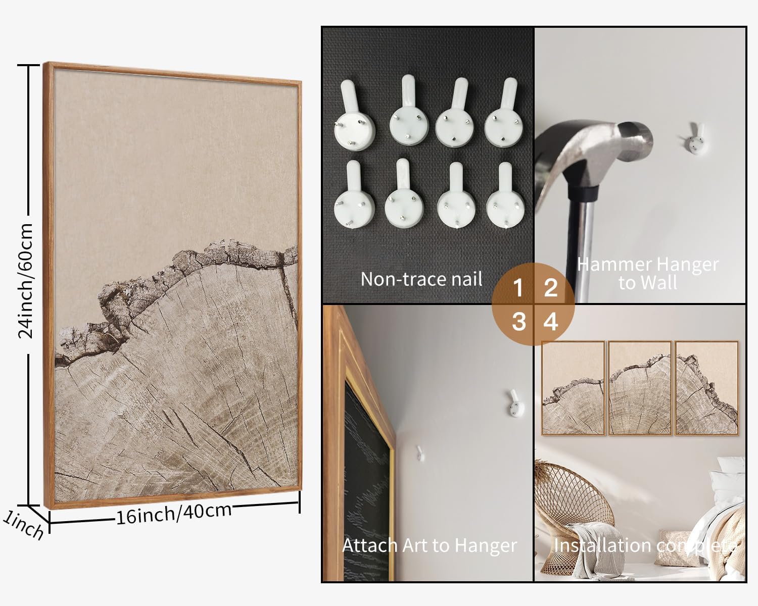 SIGNINART Large Tree Ring Framed Canvas Wall Art Set, Rustic Beige Nature Wooden Wall Decor, Neutral Wood Stump Artwork, Modern Art Prints for Bedroom Living Room Office 16"x24"x3