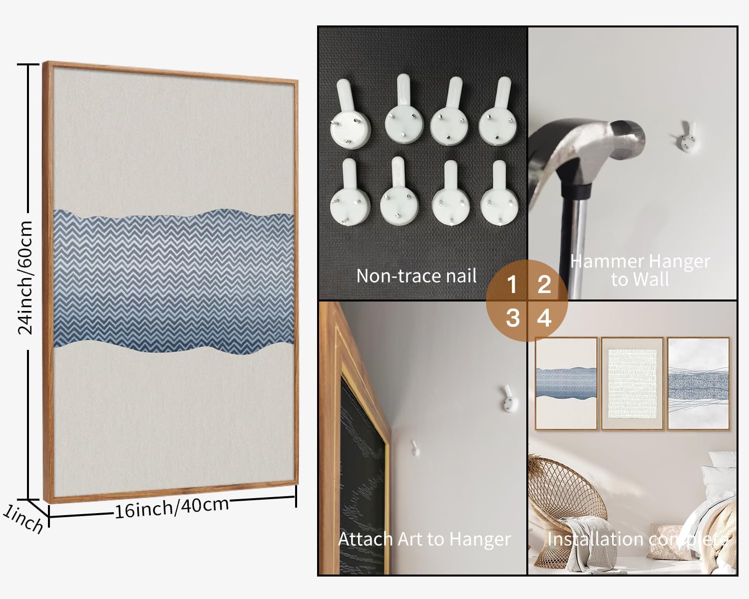 SIGNINART Large Abstract Framed Canvas Wall Art Set of 3, Minimalist Boho Line Art Prints, Modern Neutral Aesthetic Wall Decor, Blue and White Art Paintings for Living Room, Bedroom, Office 16"x24"