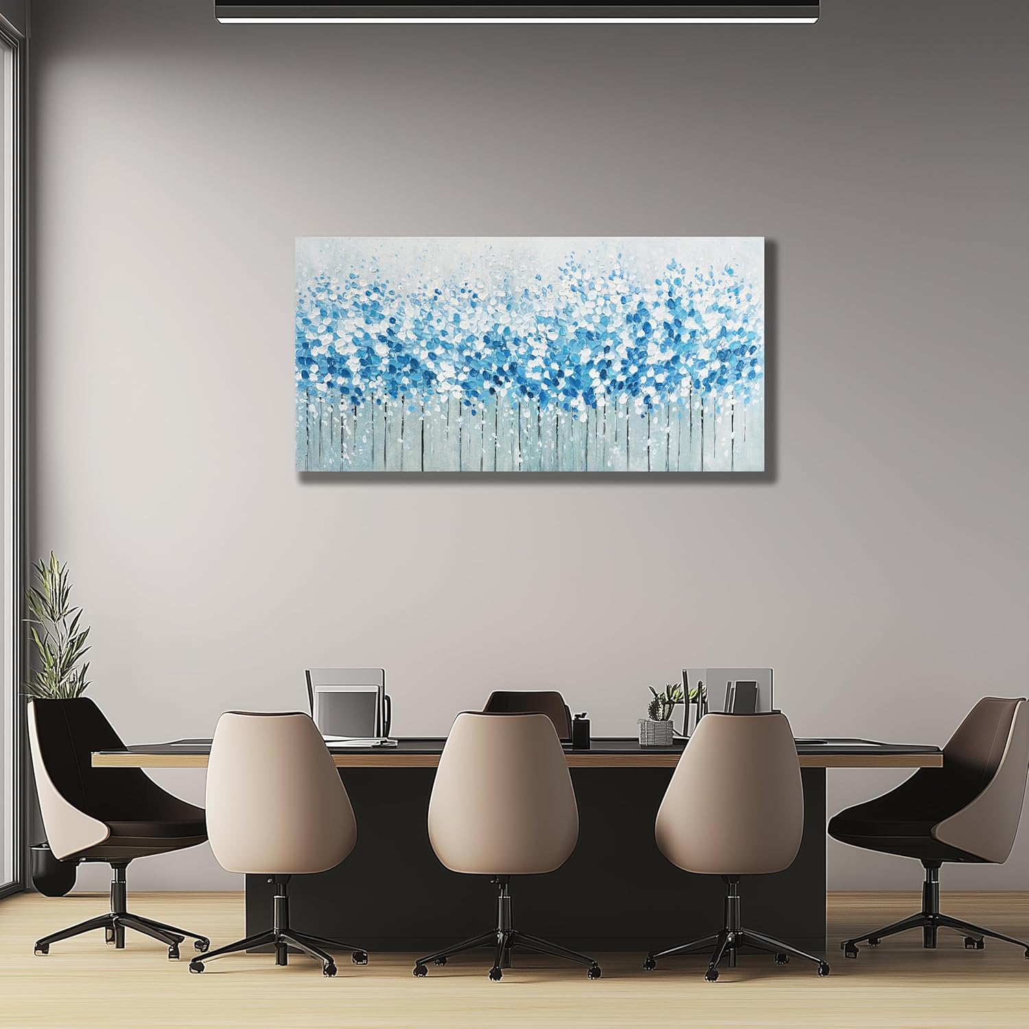 Belmrxne Large Abstract Wall Art Blue and White Wall Decor Maximalist Artwork Modern Aesthetic Canvas Painting for Living Room Bedroom Dining Room Office Home Decor 30x60 inch