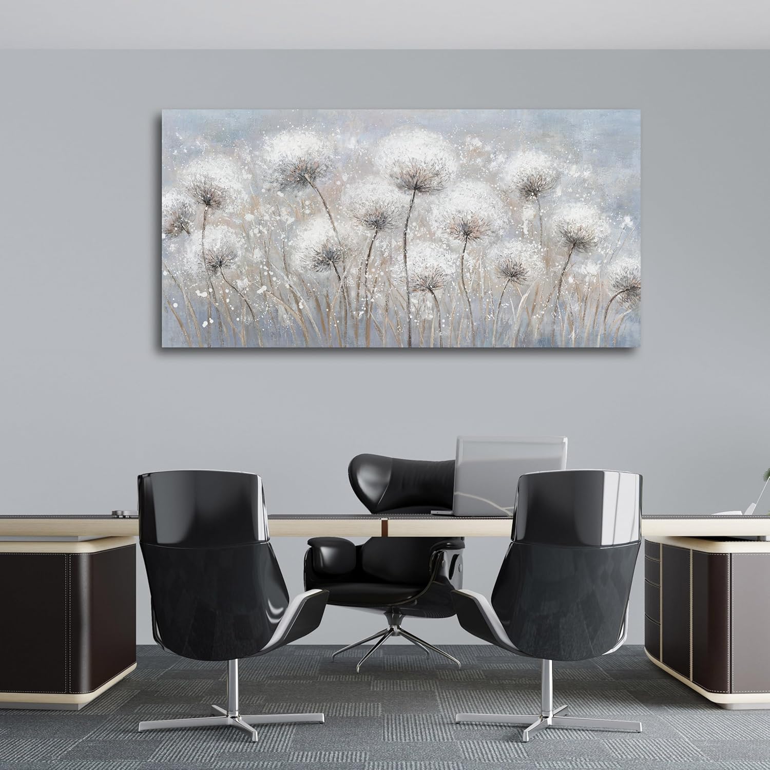 Belmrxne Dandelion Floral Wall Art White and Black Wall Decor Modern Artwork Above Couch Canvas Painting for Living Room Bedroom Dining Room Office Home Decor 24x48 inch