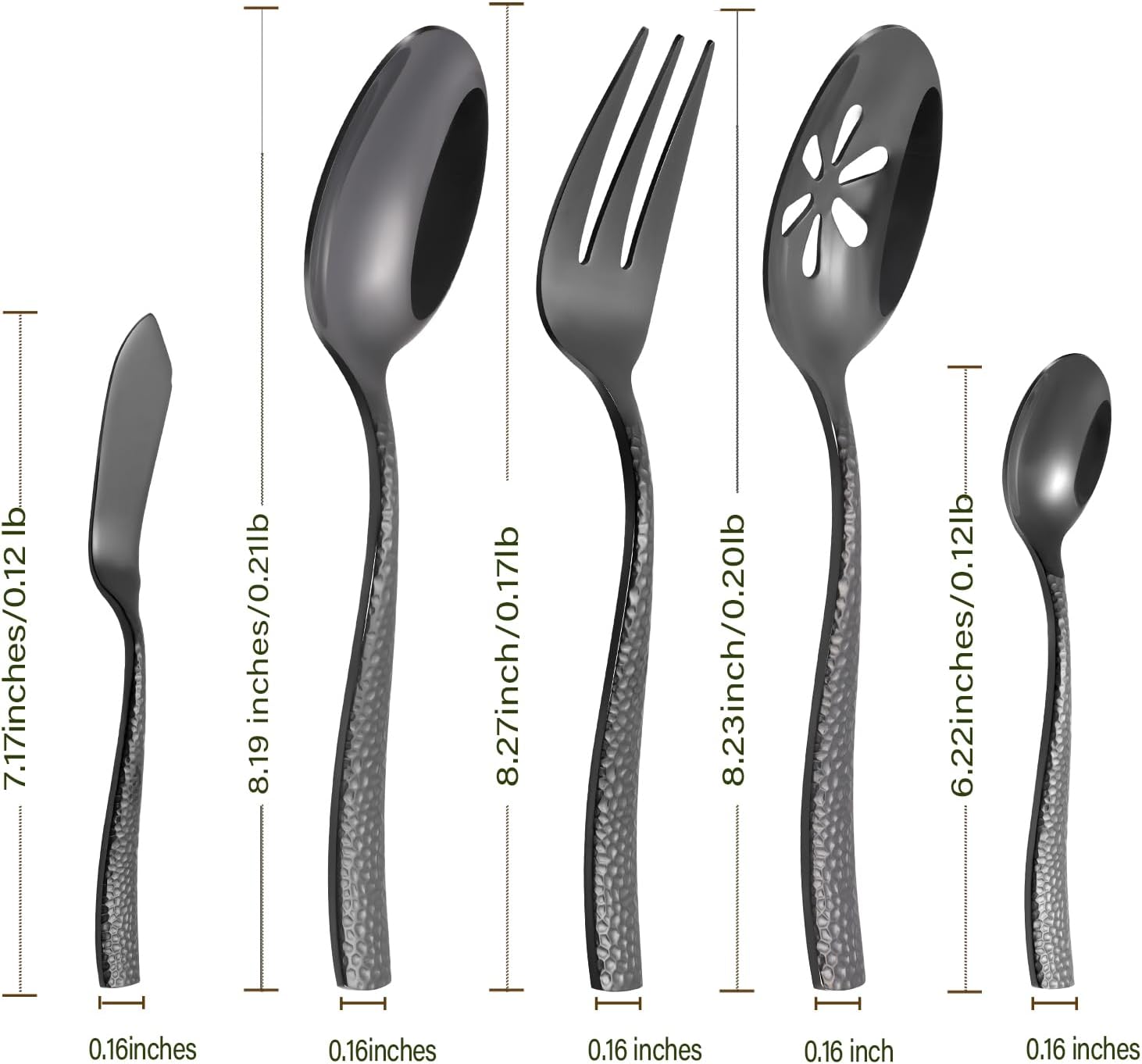 Stainless Steel Silverware Serving Set Hammered Black Mirror Finished 5 Piece Serving Utensil Set Flatware Set