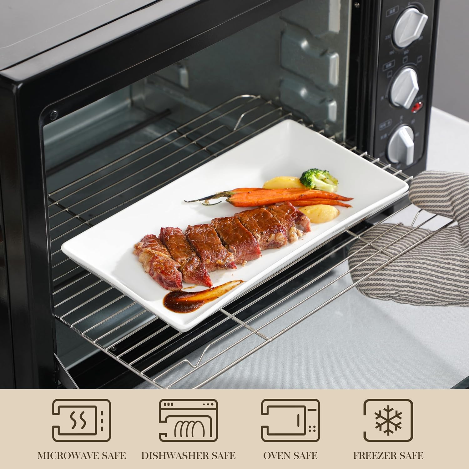 - Sturdy and Stable: Our 12-inch serving tray stand comes with 3 layer sturdy metal stand with three of white rectangular ceramics trays, providing ample space to elegantly present your food and desserts, The black metal rack is robust, and stable,foldable, allowing to flexibly adjust angles and convenient access to food. Our tiered platter stands firm while holding your favorite delicacies. Whether it’s delicate pastries or savory bites, rest assured the serving stand will make your display secure and eye-catching.