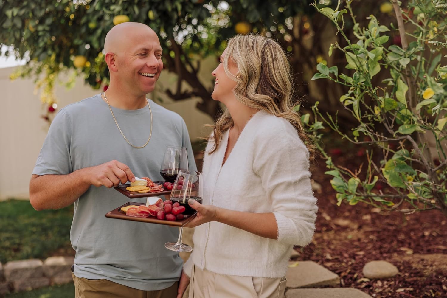 - CHEESE BOARD STEADY - Made of stylish wood, each plate with wine holder features a built-in ridge around the perimeter to help stabilize your small bites