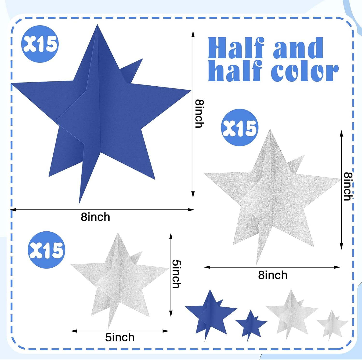 - Package Includes: the package contains 45 pieces of 3D star party table decorations in 3 size include 15 pcs 8 inches, 15 pcs 5 inches, 15 pcs 3 inches, that you can assemble and decorate yourself by DIY, matching the color scheme and theme of your event
