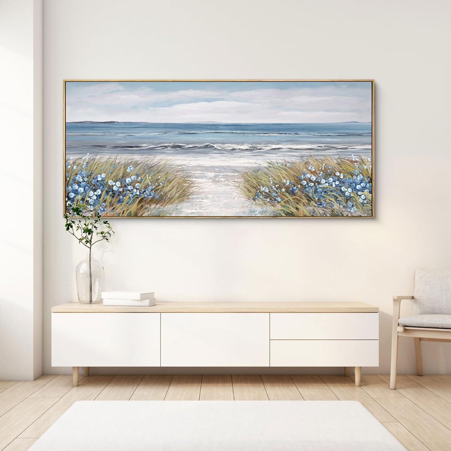 XLSJERST Extra Large Framed Wall Art for Living Room Decor - Farmhouse Boho Beach Coastal Vintage Floral Ocean Wall Picture Flowers Sea Canvas Print Artwork for Home Bedroom Office