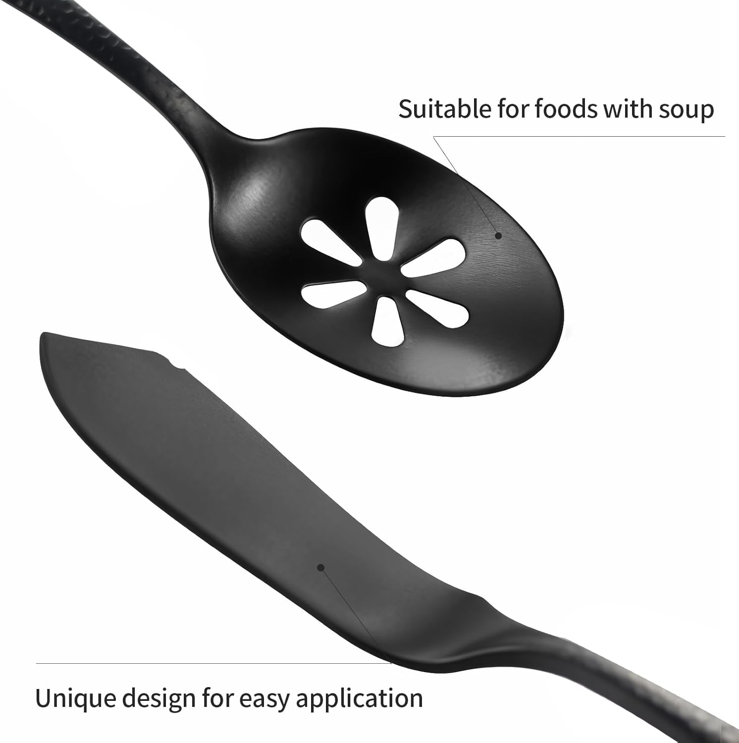 - ăAPPEARANCE AND DESIGNăLuxury balck color and matte polish, unique design with hammered handle, dishwasher safe.
