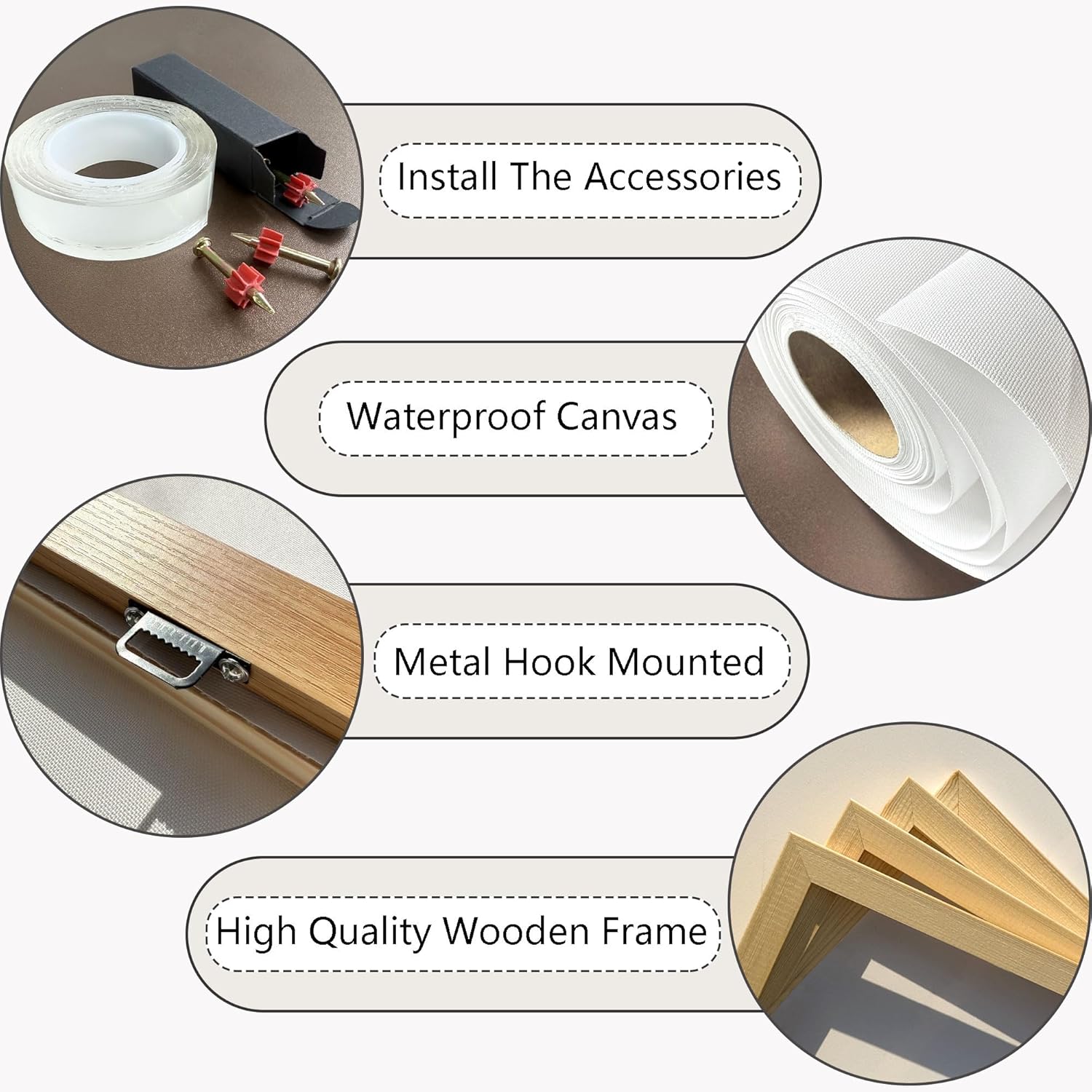 - Scenery Wall Decor:Each piece comes pre-stretched on a solid wooden frame with pre-installed D-ring hooks and hanging accessories, making it easy to hang and instantly transform your space.