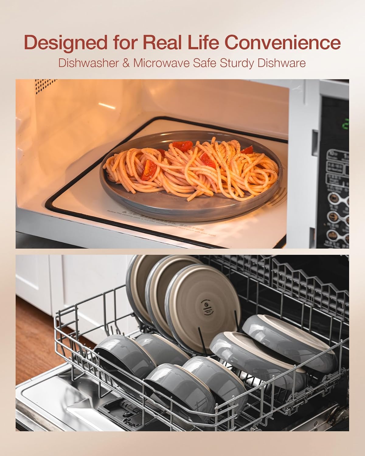 - 【DISHWASHER AND MICROWAVE SAFE】Our dishes have passed microwave and dishwasher safe testing at internationally accredited laboratories. Each plate and bowl is dishwasher safe and microwave safe.