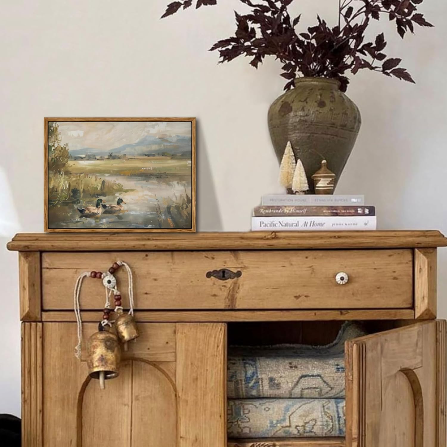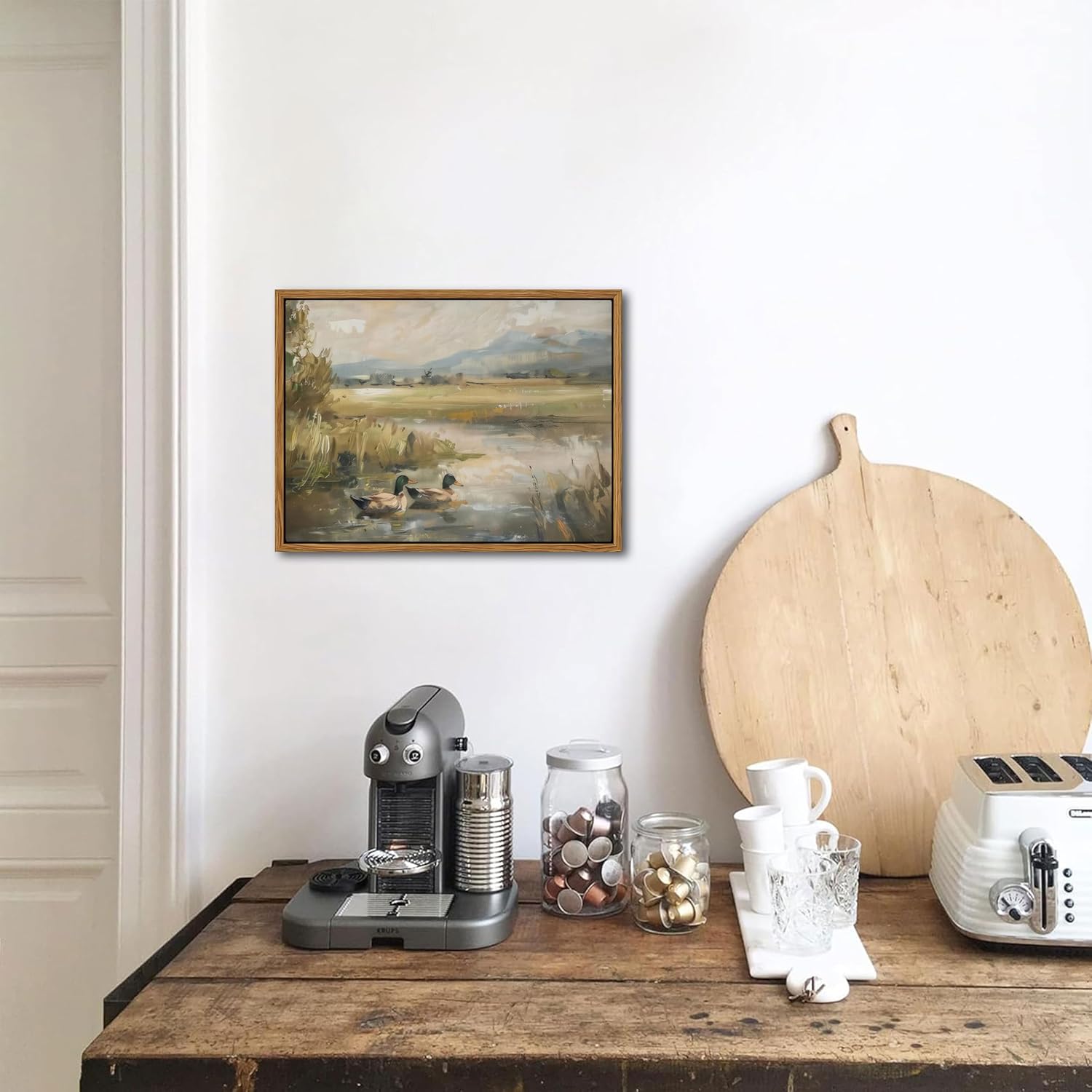 Floating Framed Canvas Wall Art, Vintage Mallard Duck Oil Paintings Print, Countryside Art Wildlife Nature Pond Wall Decor for Living Room, Bedroom, Office, Rustic Decor 8x10 inch