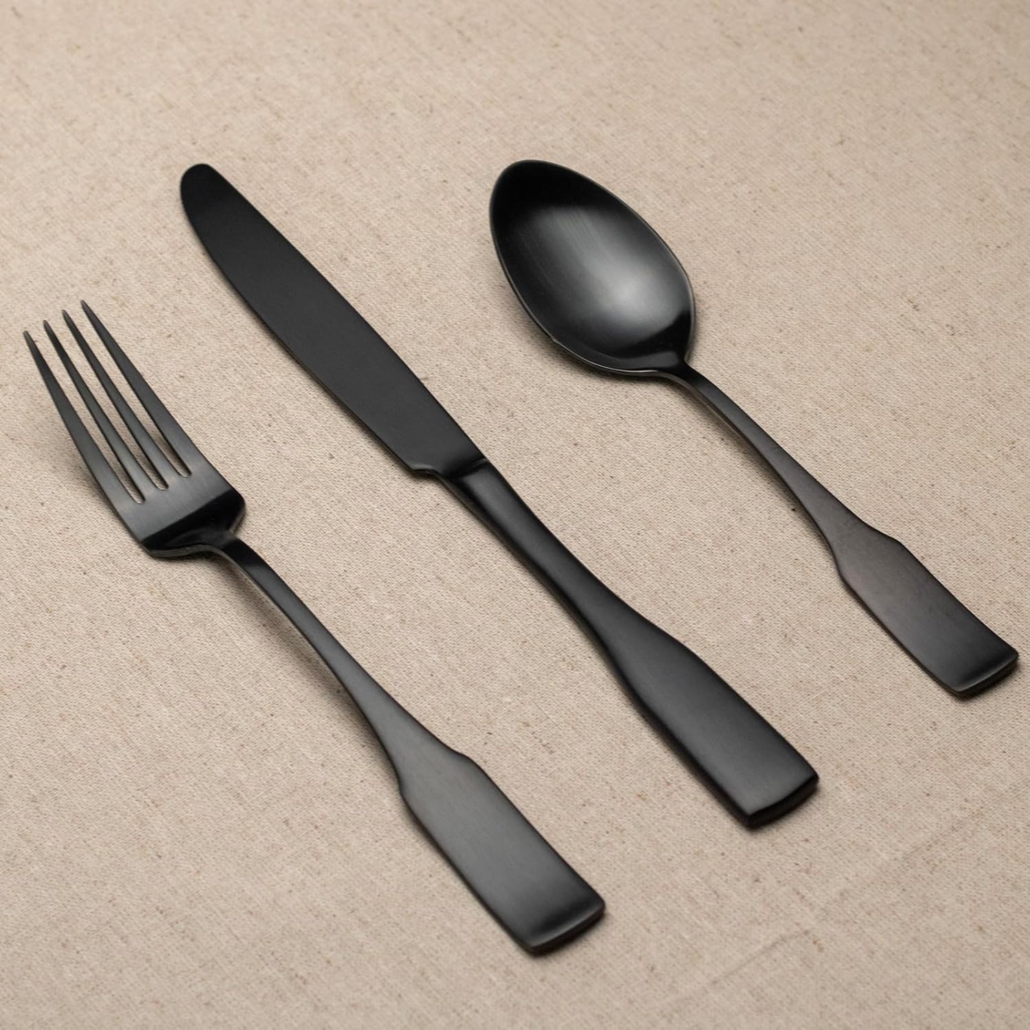 Alata Kate Black Satin 40-Piece Silverware Set, Service for 8, Stainless Steel Flatware Set, Matte Polished Cutlery Set, Dishwasher Safe