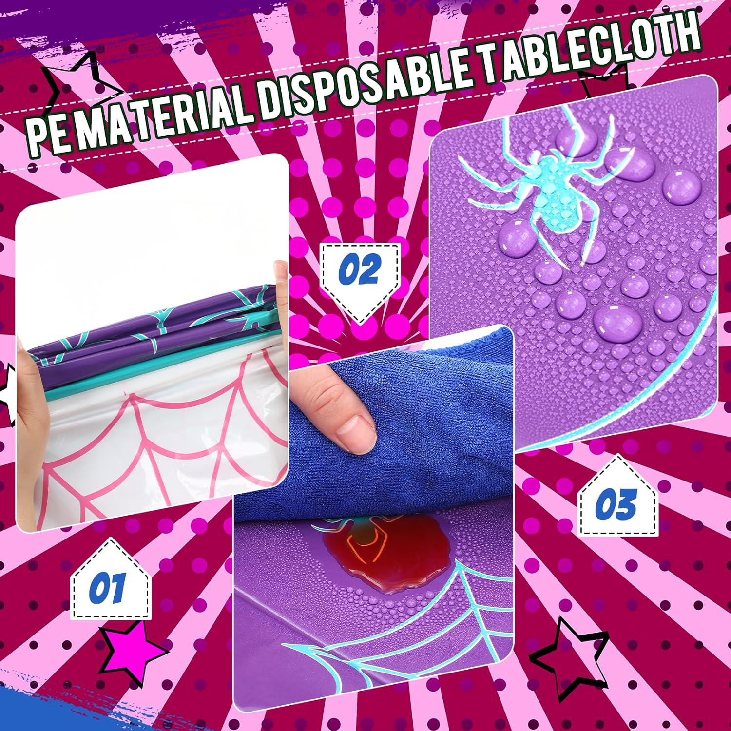 - Ideal Gift: these spider birthday tablecloths make a truly ideal spider party favors; Share your care and wishes by gifting them during purple-themed birthday parties, spider parties, fun spider-themed events, anniversaries, and other occasions, to family and friends