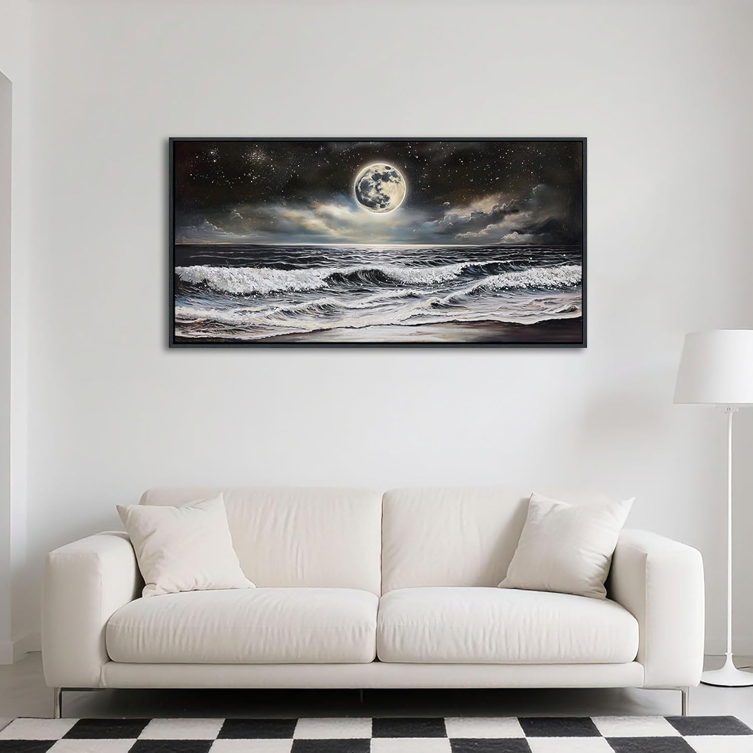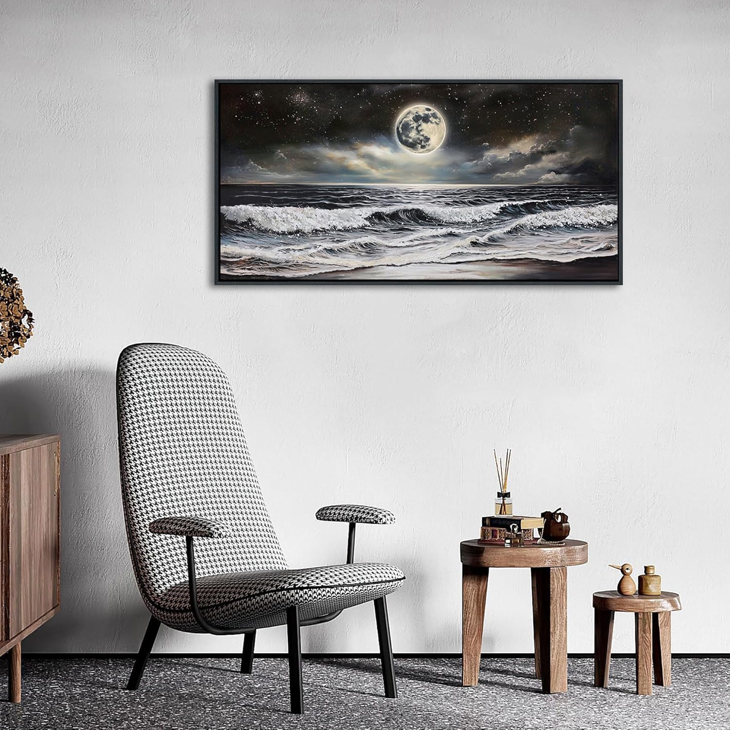 - Beach Pictures Wall Art: This beach canvas wall art presents a mesmerizing view of the ocean under a full moon.It brings the allure of a moonlit beach right into your home, perfect for those who love the mystery and beauty of the night sea.